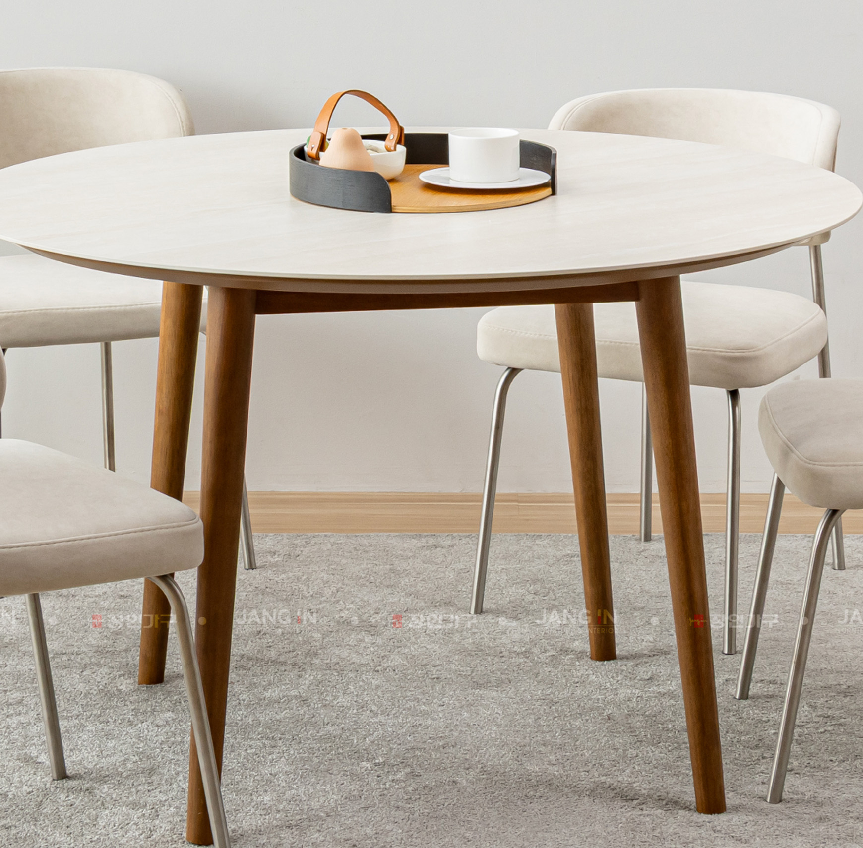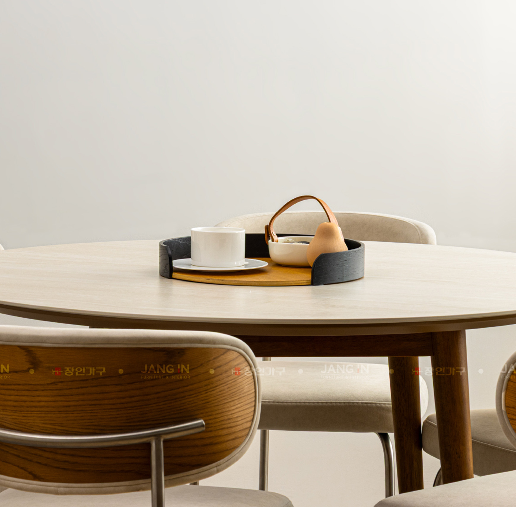 Hình tròn luôn mang ý nghĩa của sự vĩnh cửu, trọn vẹn và gắn kết, là biểu tượng của sự kết nối bền bỉ trong cuộc sống. Lấy cảm hứng từ đó, Jang In cho ra mắt bộ bàn ăn tròn Adeline. Sự kết hợp hài hòa các chất liệu quen thuộc như Ceramic, MDF, gỗ cao su tự nhiên, Plywood, Inox cùng vải siêu tính năng, tạo nên một tổng thể tinh tế và đầy thẩm mỹ.