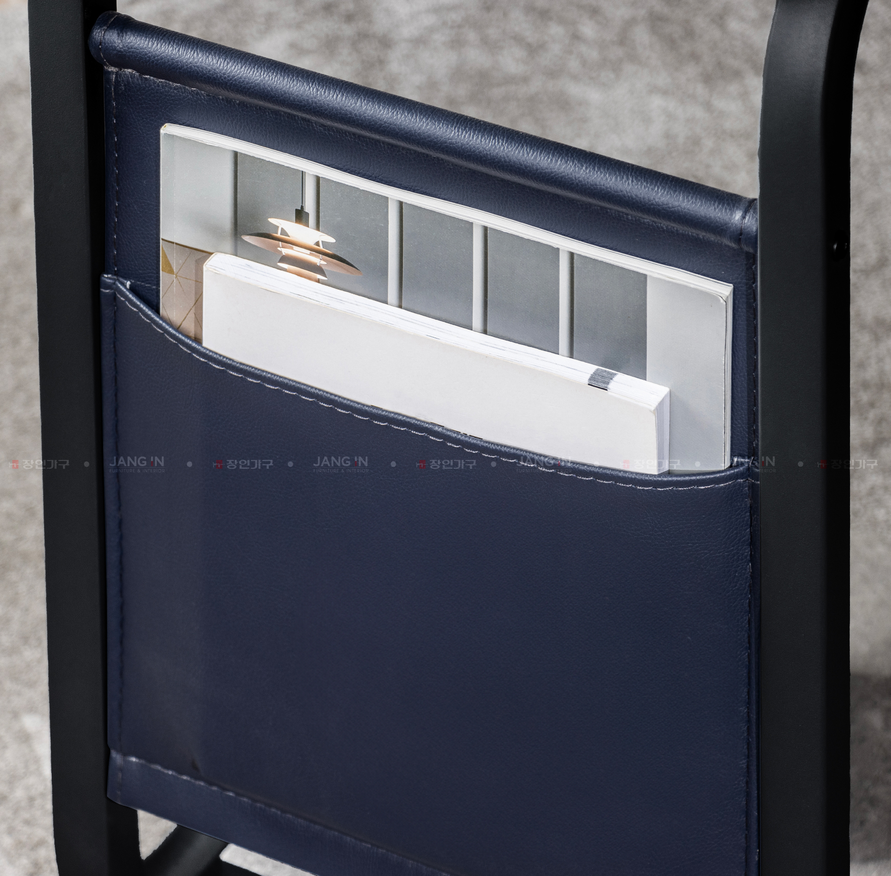 Phía sau bàn Carter được nhấn mạnh bằng chiếc túi PVC được thiết kế khéo léo.