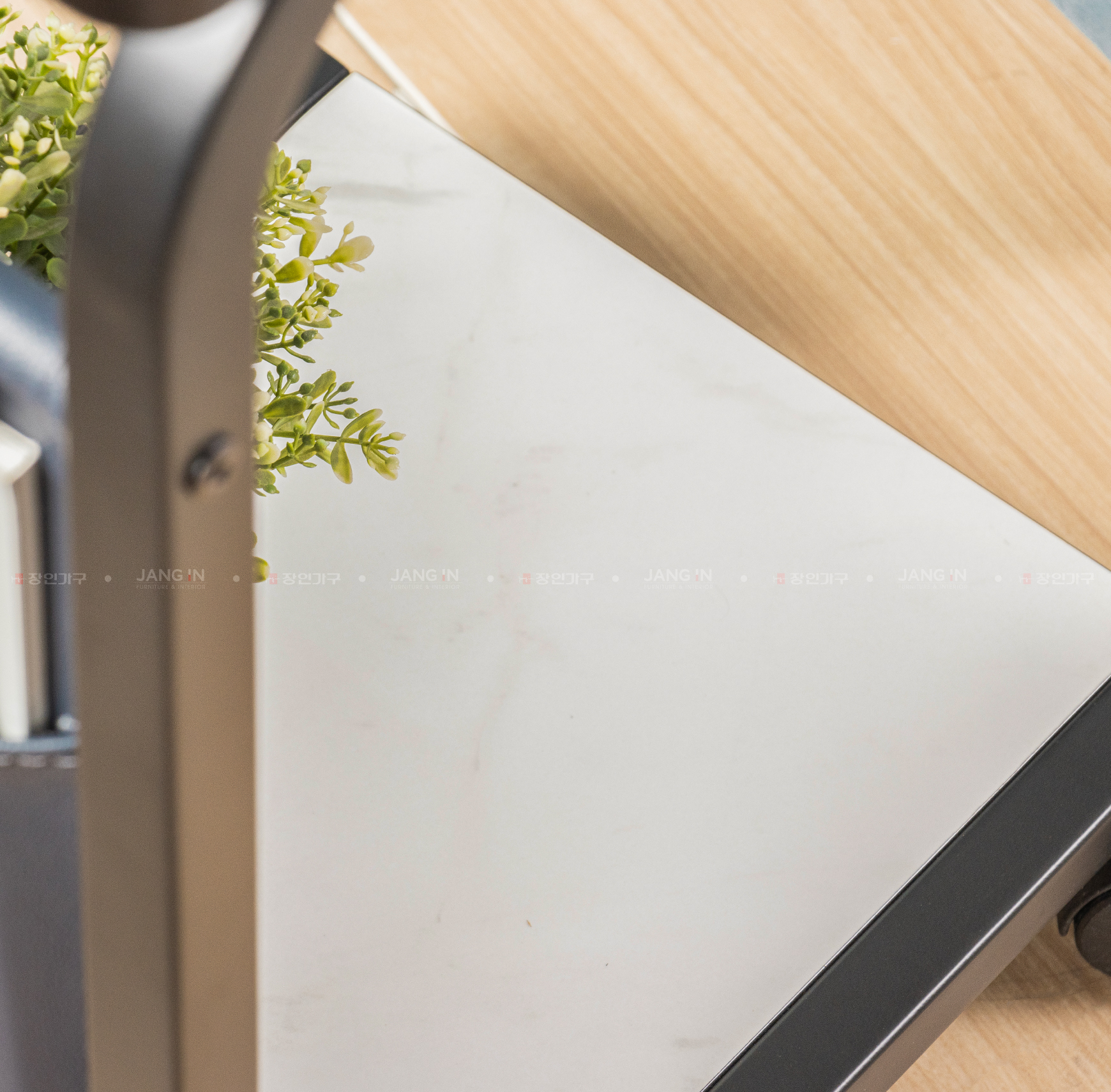 Bên cạnh mỗi bánh xe có chốt khóa giúp cố định vị trí bàn khi không cần di chuyển.
