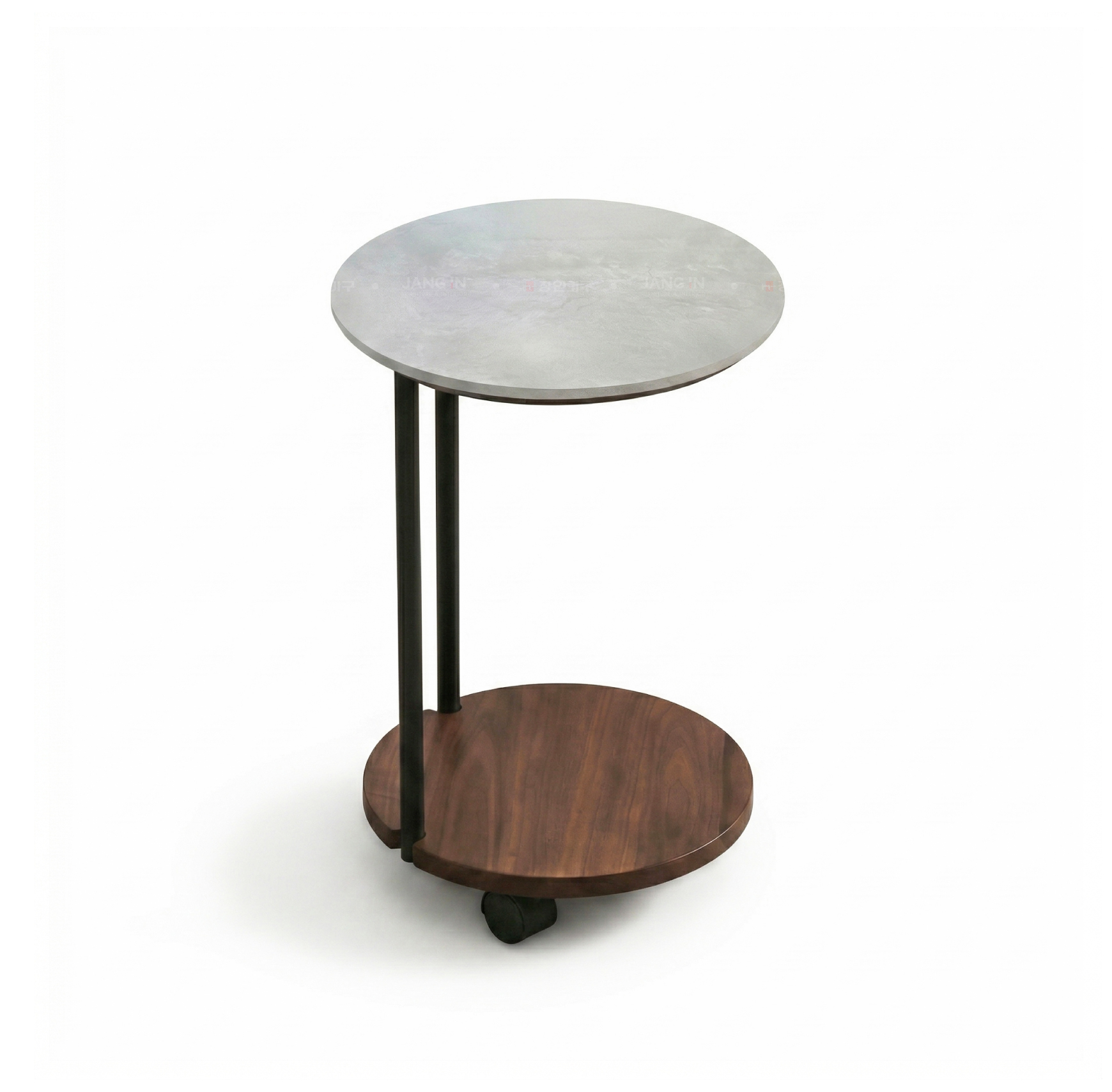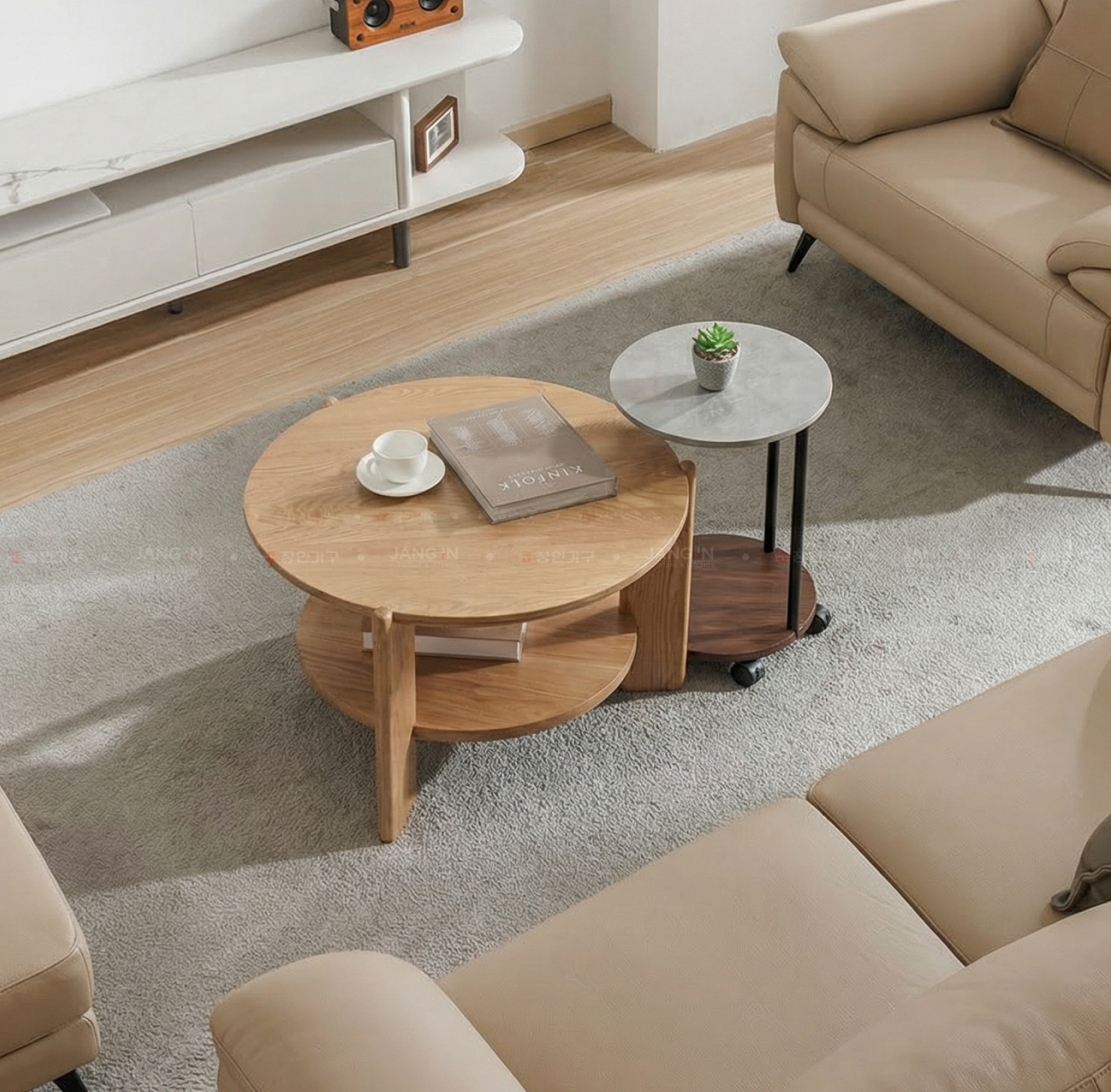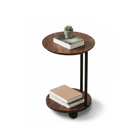 Mặt bàn trên và dưới được làm từ gỗ tần bì tự nhiên, kết hợp khung và chân sắt sơn tĩnh điện chắc chắn. Thiết kế hài hòa, linh hoạt sử dụng làm bàn bên sofa hoặc phối hợp cùng bàn trà tròn, bàn trà màu gỗ, phù hợp nhiều không gian nội thất.