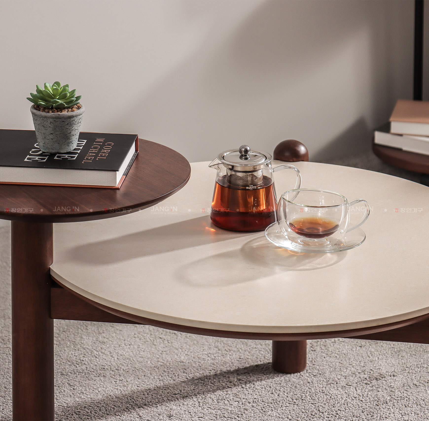 Bàn trà tròn Eclipse sở hữu thiết kế độc đáo với bàn nhỏ đi kèm, vừa gia tăng diện tích sử dụng, vừa tạo điểm nhấn ấn tượng cho không gian phòng khách. Mặt Ceramic nhập khẩu cao cấp giúp bạn dễ dàng lau chùi, vệ sinh, kết hợp cùng khung 3 chân vững chãi mang đến tổng thể hài hòa và chắc chắn.