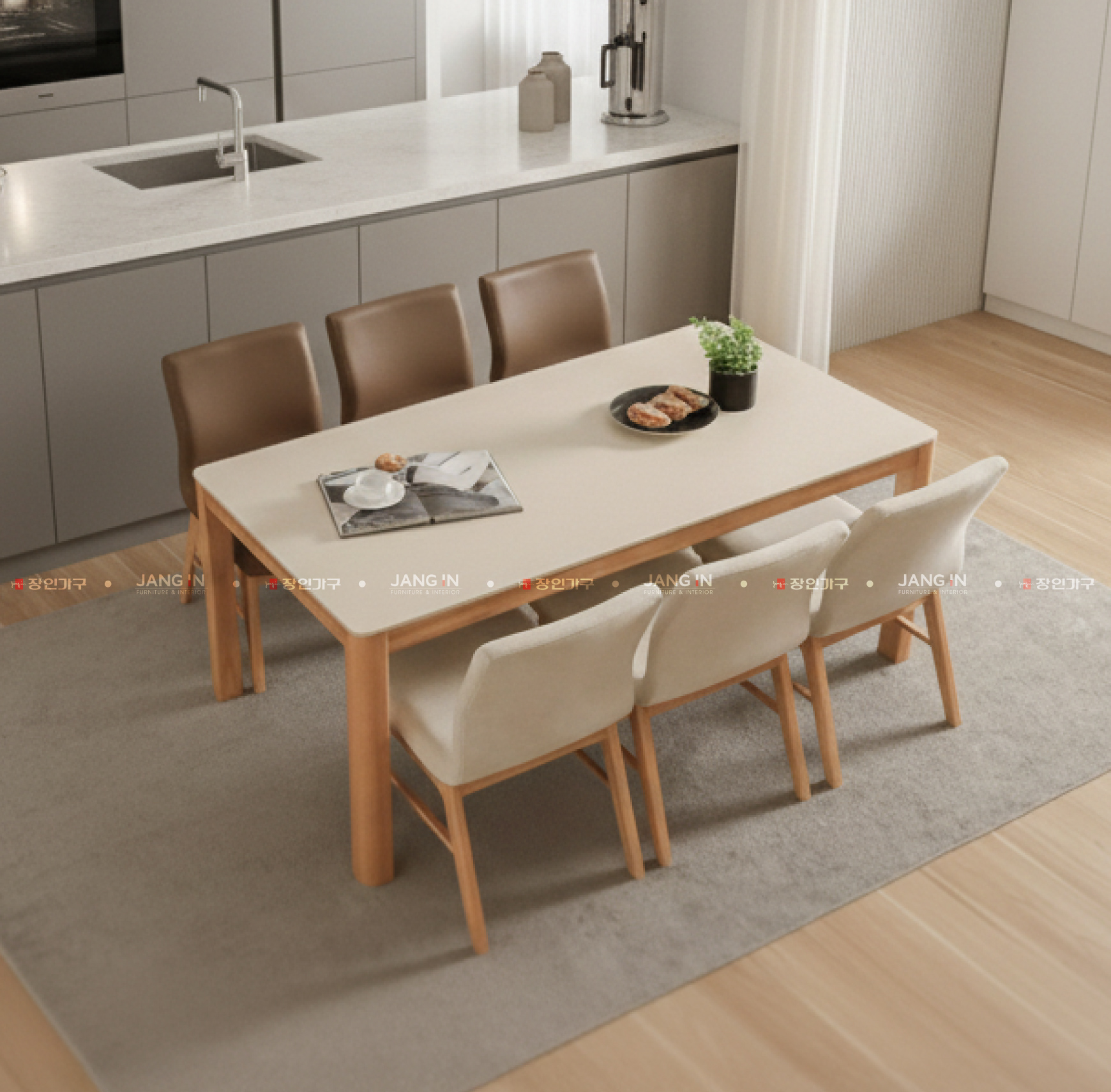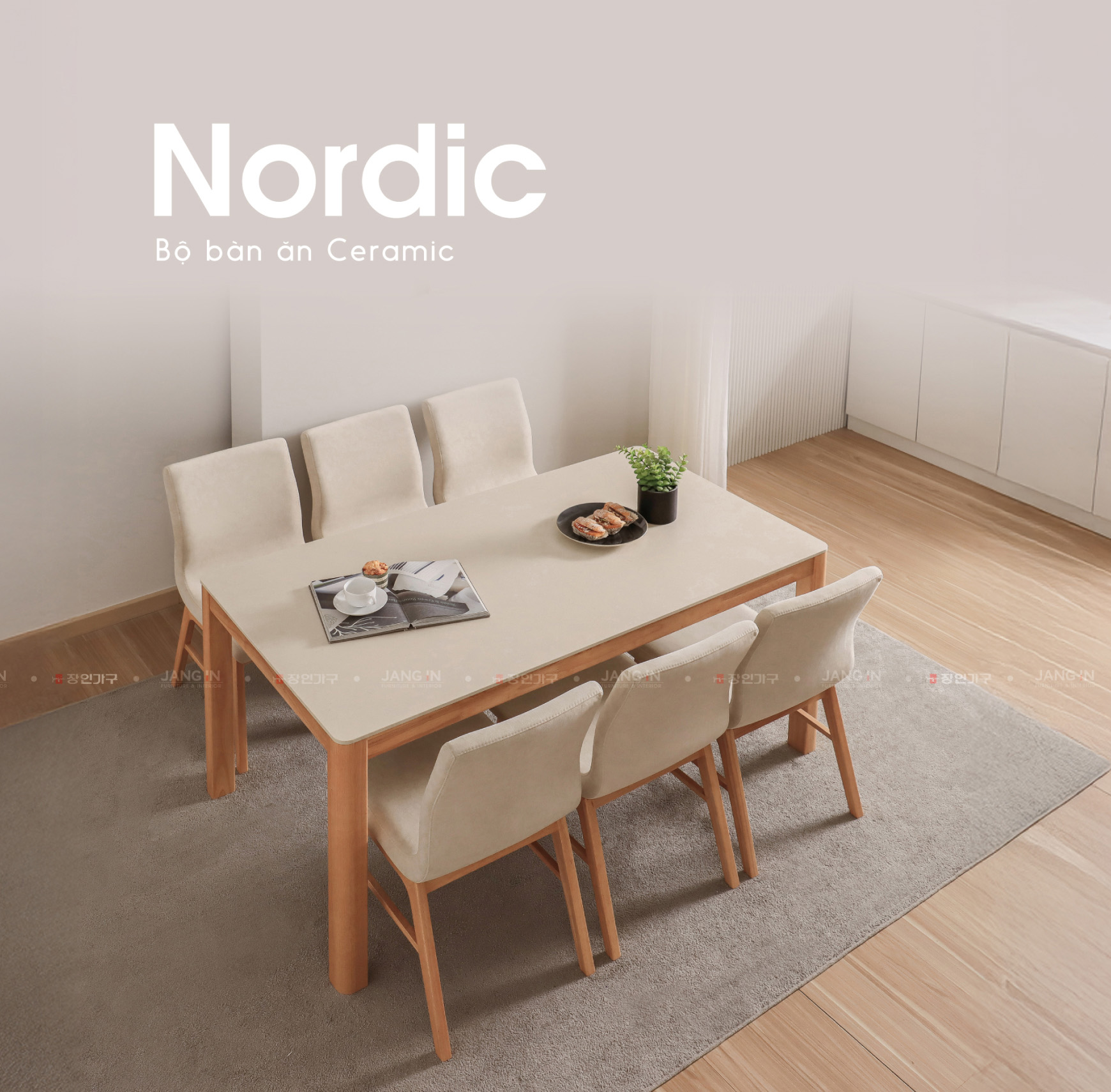 Bộ bàn ăn Nordic là lựa chọn lý tưởng cho những ai tìm kiếm sự hòa quyện giữa vẻ đẹp tinh tế và độ bền vượt trội. Bàn sở hữu mặt Ceramic Beige sang trọng, hạn chế trầy xước và dễ dàng vệ sinh, kết hợp cùng khung gỗ cao su tự nhiên chắc chắn, mang đến tổng thể thanh thoát đậm chất Bắc Âu.