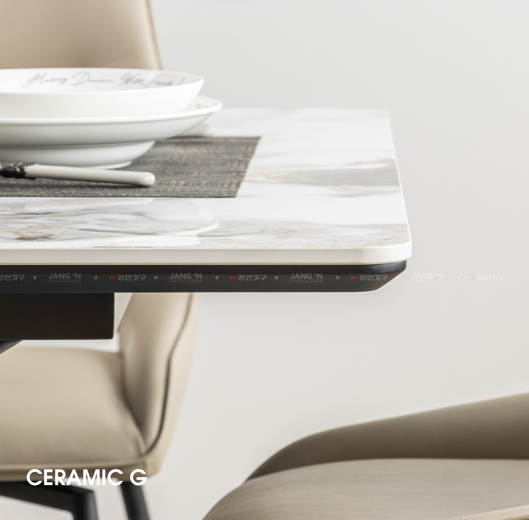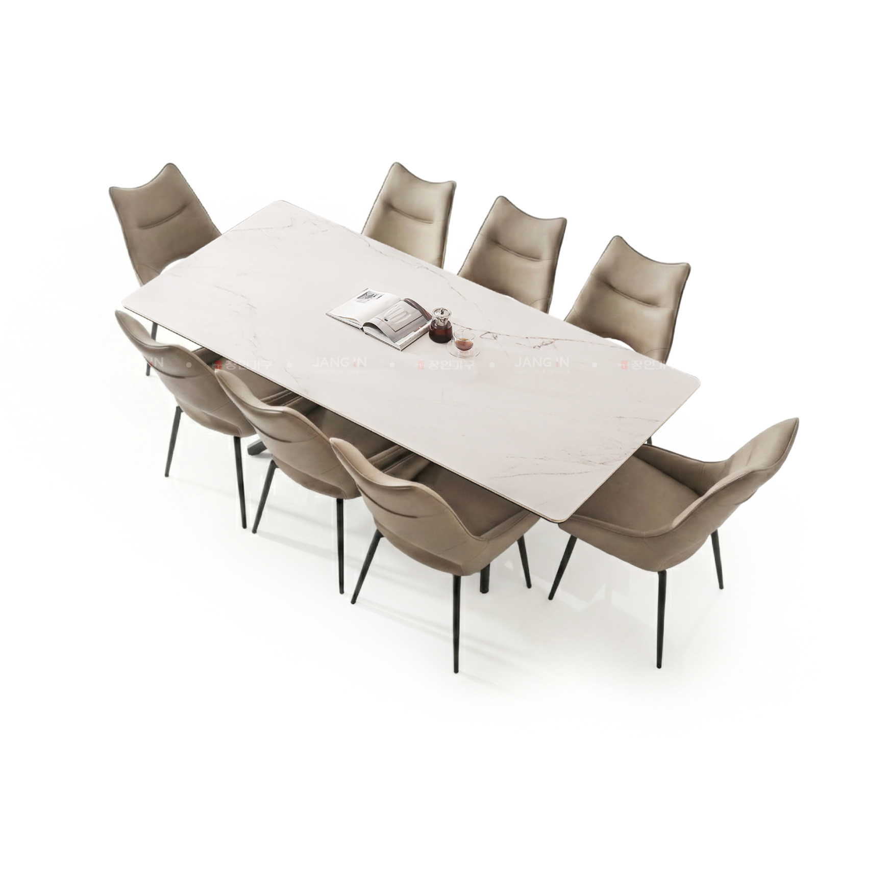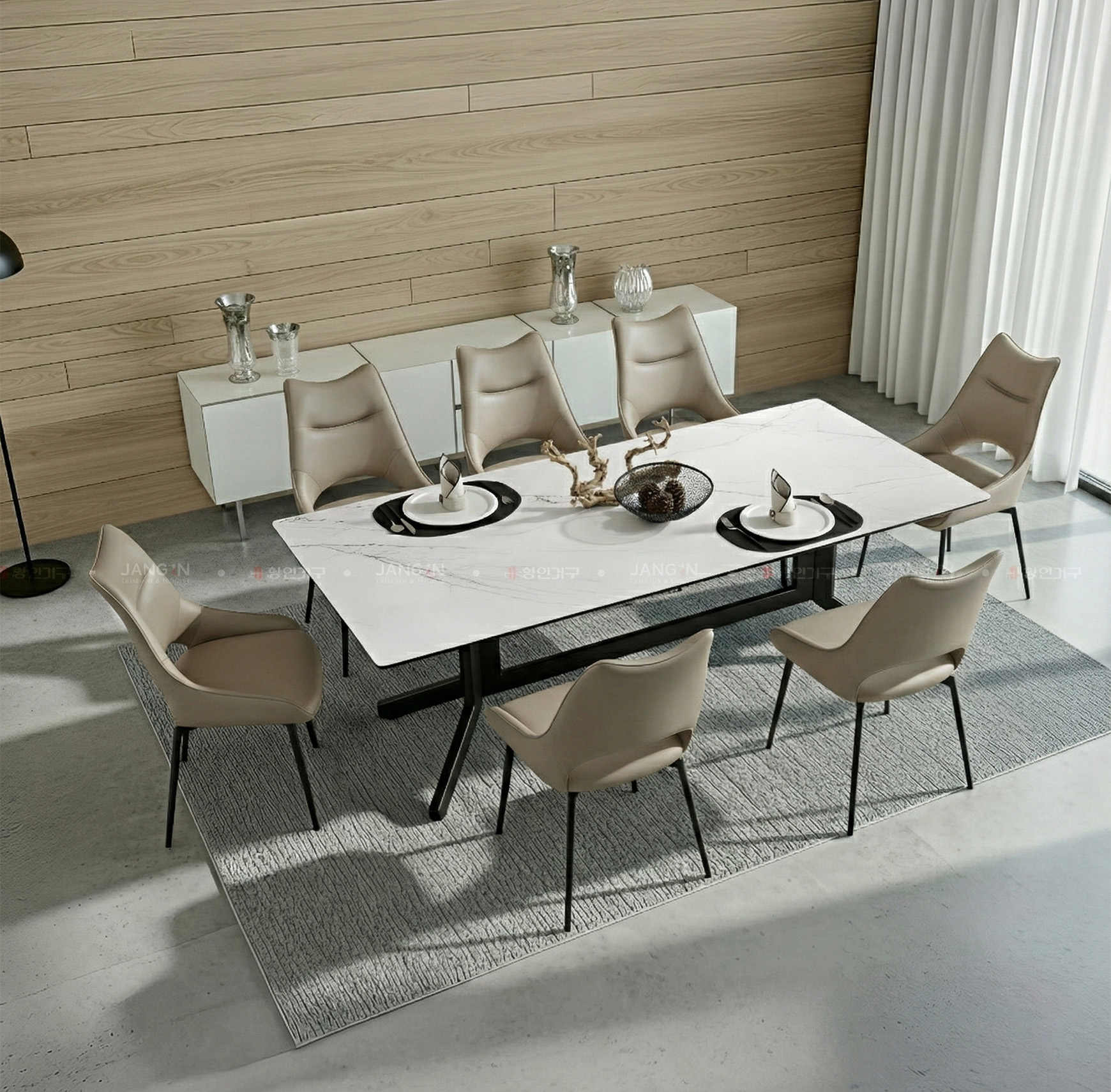 Bàn ăn Winston nổi bật với mặt đá ceramic trắng sáng, điểm nhẹ những đường vân mây mỏng tinh tế, giúp không gian trở nên thoáng rộng và hiện đại hơn. Chất liệu Ceramic nhập khẩu cao cấp có khả năng chống trầy xước, chịu nhiệt tốt, đảm bảo tiện nghi và bền bỉ trong suốt quá trình sử dụng.
