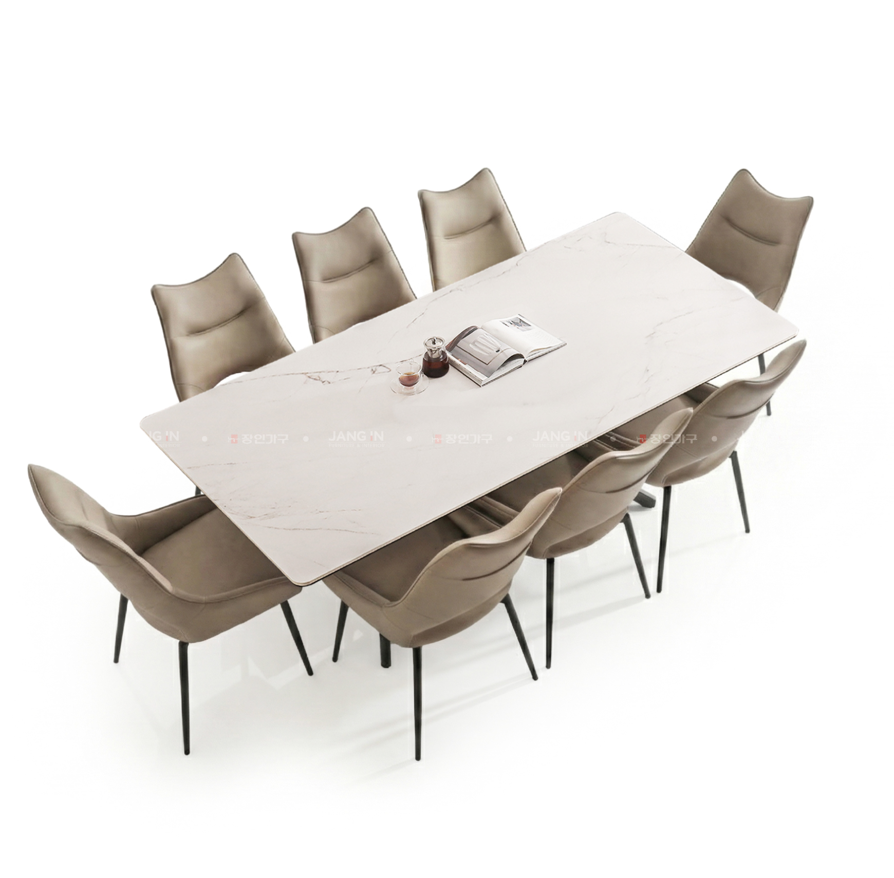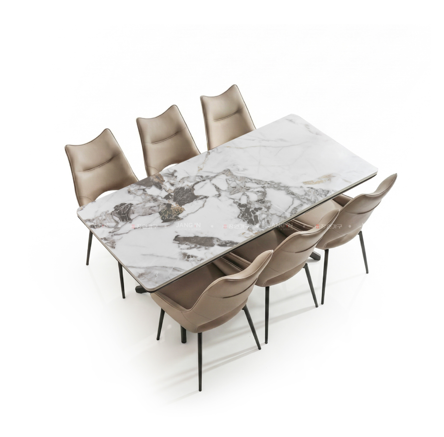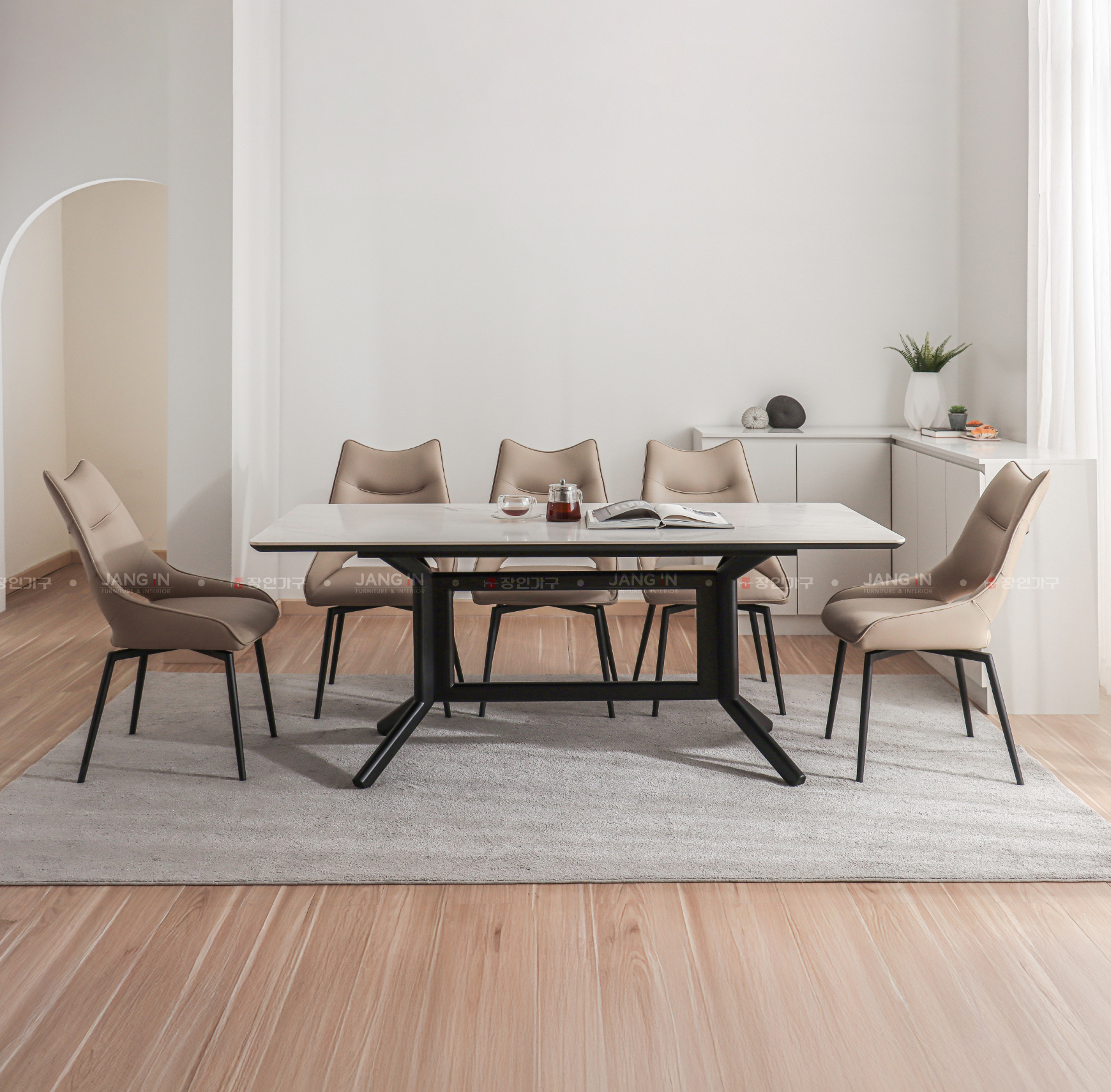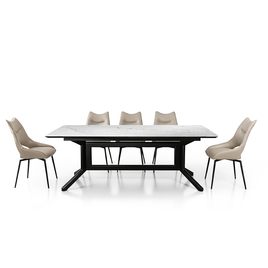 Bàn ăn Winston nổi bật với mặt đá ceramic trắng sáng, điểm nhẹ những đường vân mây mỏng tinh tế, giúp không gian trở nên thoáng rộng và hiện đại hơn. Chất liệu Ceramic nhập khẩu cao cấp có khả năng chống trầy xước, chịu nhiệt tốt, đảm bảo tiện nghi và bền bỉ trong suốt quá trình sử dụng.
