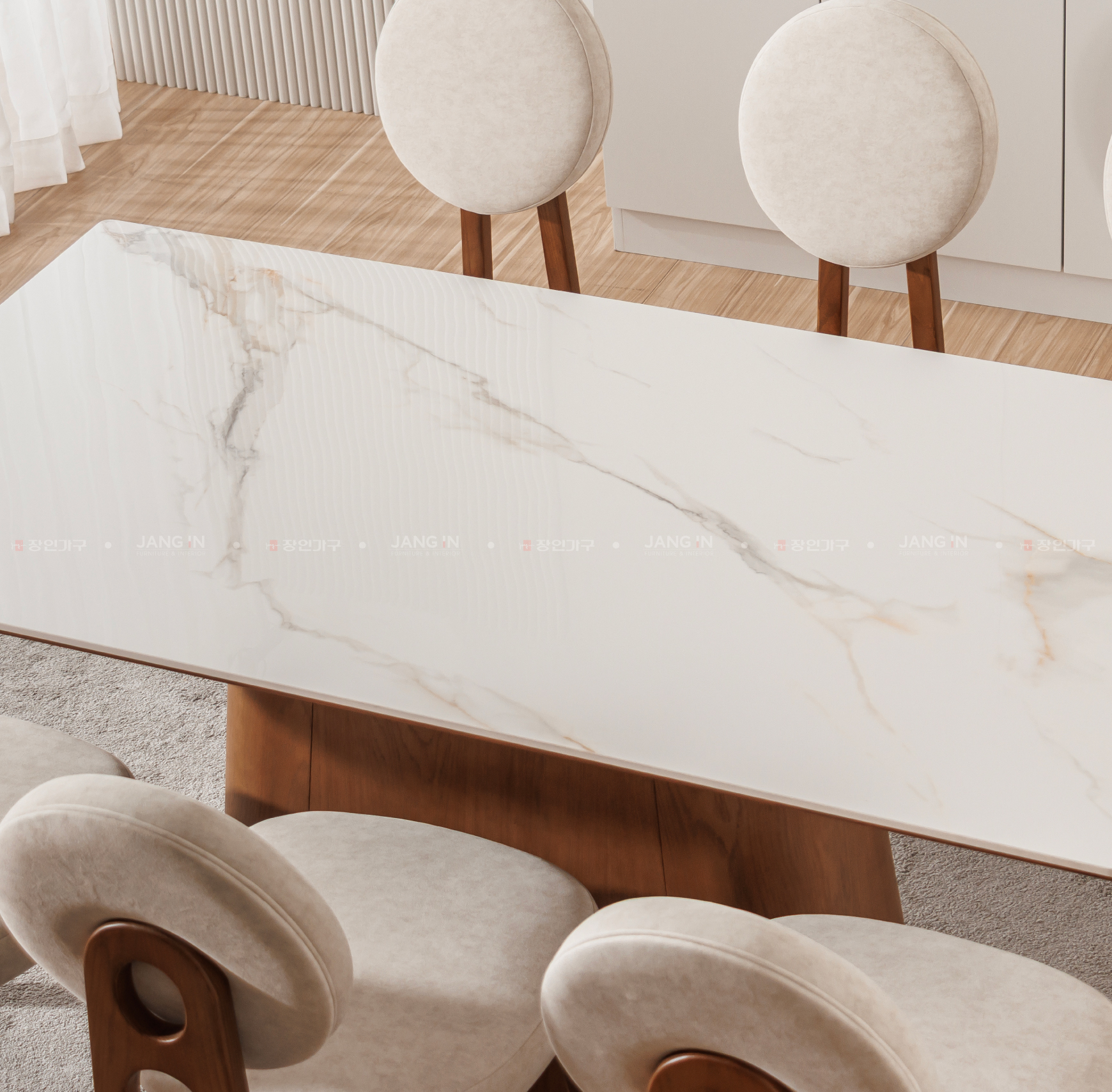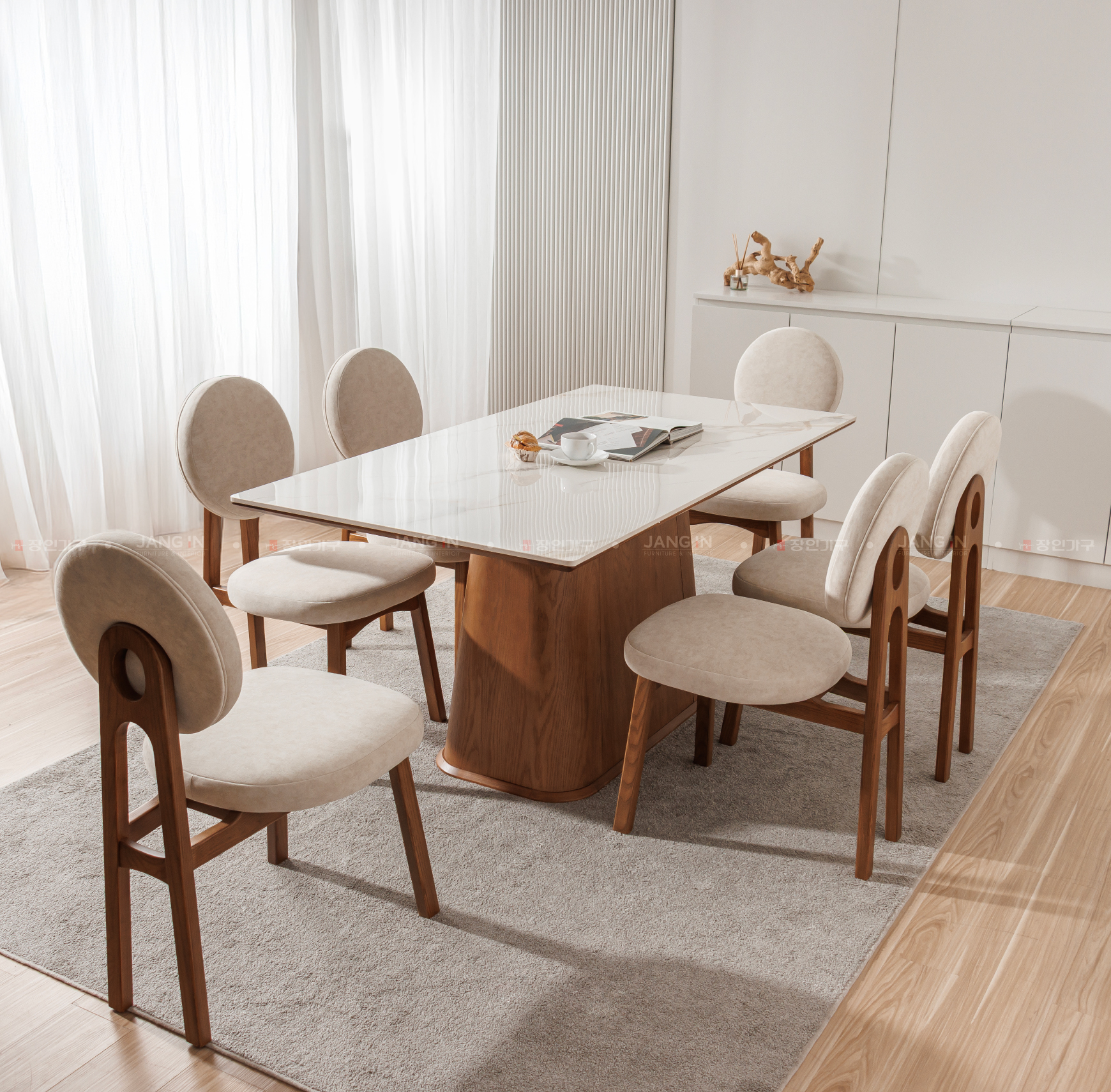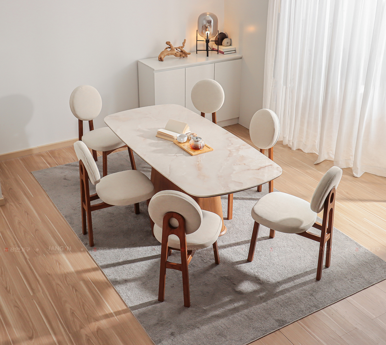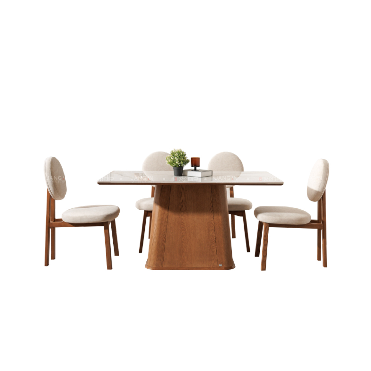 Bàn ăn: Gỗ tự nhiên, mặt đá Ceramic |