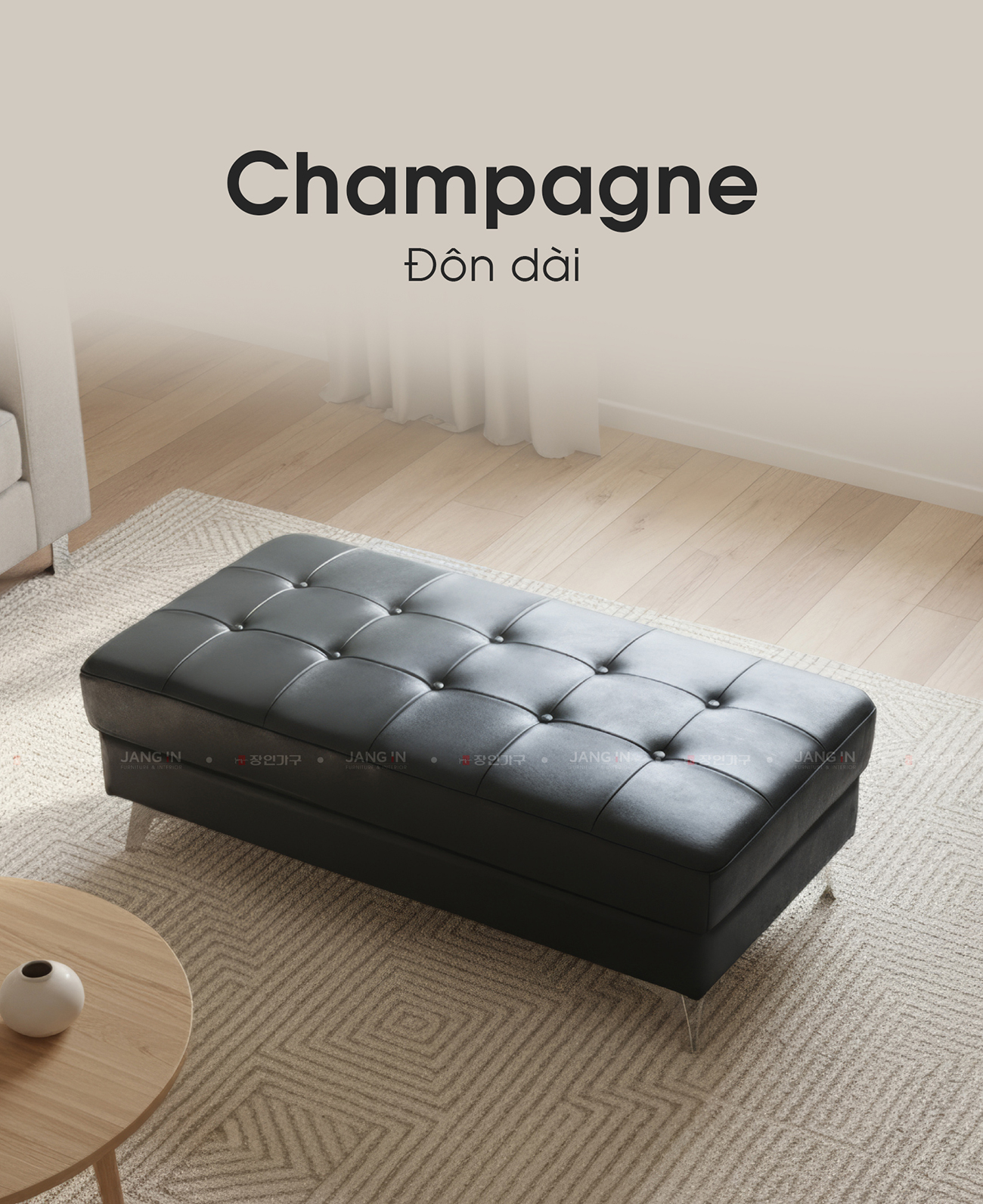 Ghế đôn dài Champagne sở hữu tông màu Dark Navy sang trọng cùng thiết kế hiện đại, nổi bật với các mảnh ghép tinh tế trên nệm ngồi. Lớp nệm kép mang lại cảm giác êm ái và thoải mái khi sử dụng. Với kích thước ngang 1200mm, rộng 550mm và cao 430mm, Champagne dễ dàng kết hợp cùng giường ngủ hoặc sofa phòng khách, tạo điểm nhấn hài hòa cho không gian.