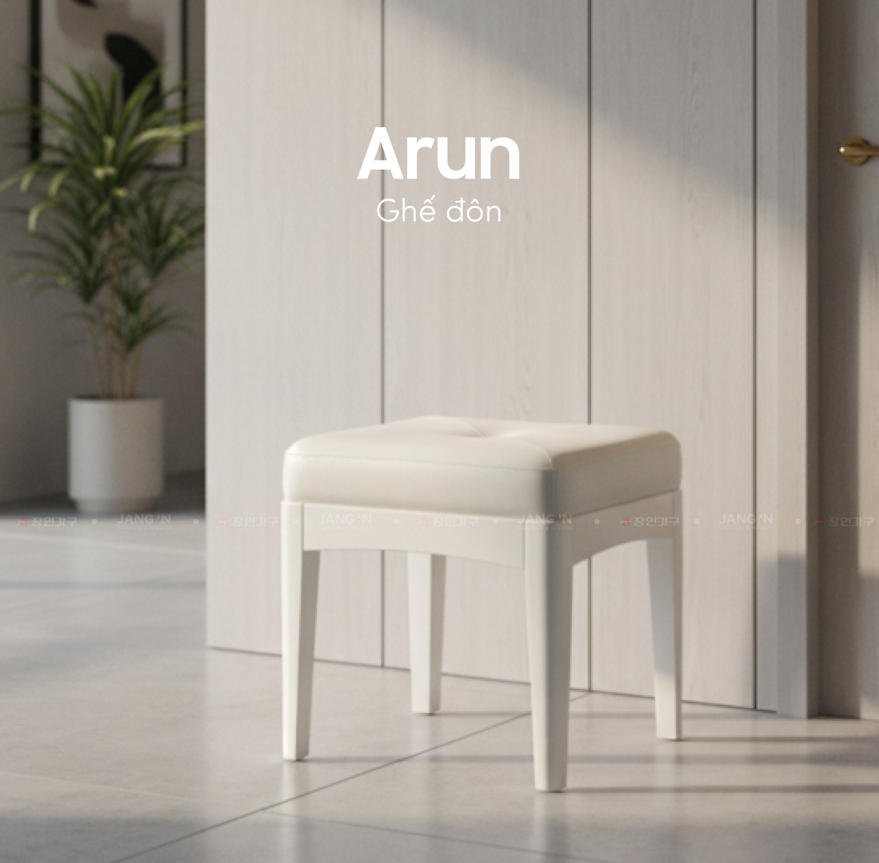 Ghế đôn Arun Walnut được chế tác từ gỗ cao su đã qua xử lý kỹ lưỡng, giúp chống mối mọt, ẩm mốc và hạn chế cong vênh hiệu quả. Sản phẩm có hai tùy chọn màu sắc: nâu đen trầm ấm mang vẻ đẹp sang trọng, huyền bí; và trắng trẻ trung, nhã nhặn, tạo điểm nhấn tinh tế cho không gian sống.