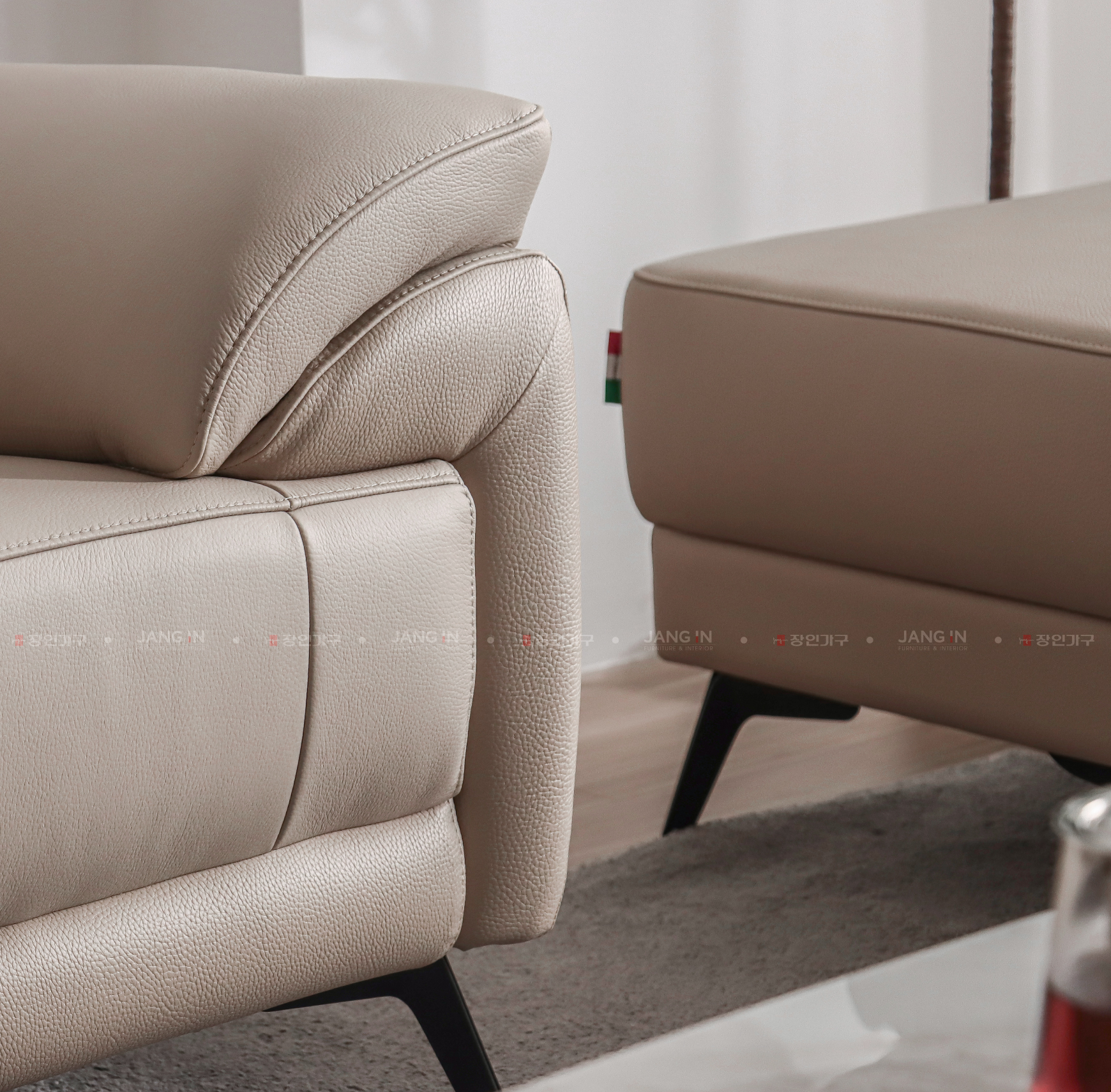 Sofa Capri sử dụng da Italia nhập khẩu, foam mật độ 35kg và khung gỗ thông chắc chắn, đảm bảo độ bền cao và khả năng giữ form vượt trội theo thời gian.