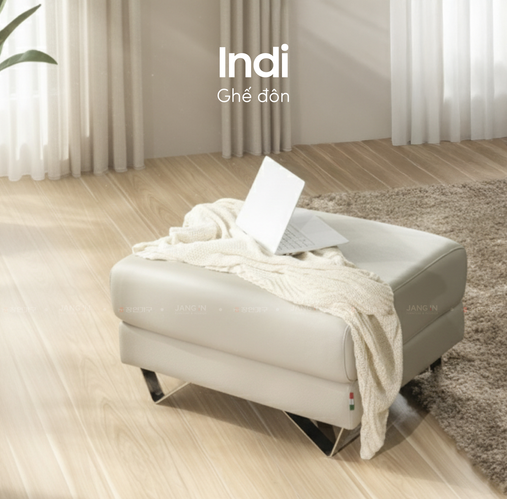 Ghế đôn sofa Indi sở hữu thiết kế hiện đại, sang trọng, được bọc da bò Ý cao cấp mang lại cảm giác mềm mại và êm ái khi sử dụng. Phần bề mặt tiếp xúc sử dụng 100% da bò thật, đảm bảo độ bền cao, không bong tróc hay phai màu theo thời gian. Gam màu Ivory nhẹ nhàng, trang nhã giúp không gian sống thêm tươi trẻ và tinh tế.