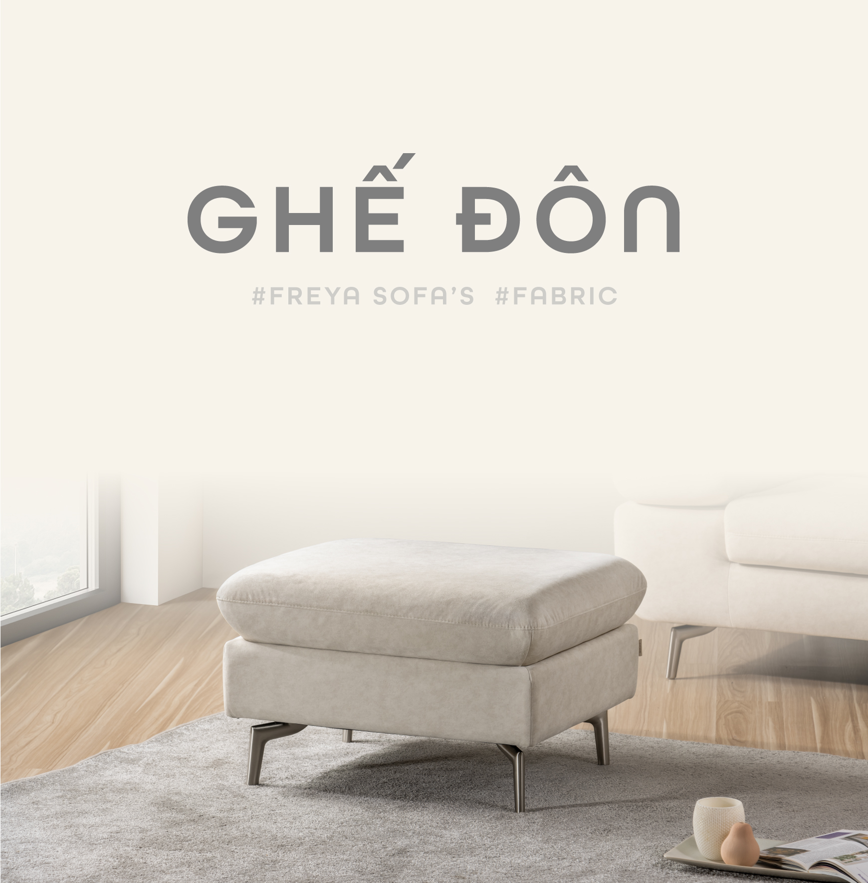 Ghế đôn Sofa Freya, mảnh ghép hoàn hảo cho bộ sofa của bạn. Ghế đôn Freya, giúp tạo thêm chỗ ngồi cho khách khi nhà đông người hoặc tạo chỗ để chân khi thư giãn trên sofa.