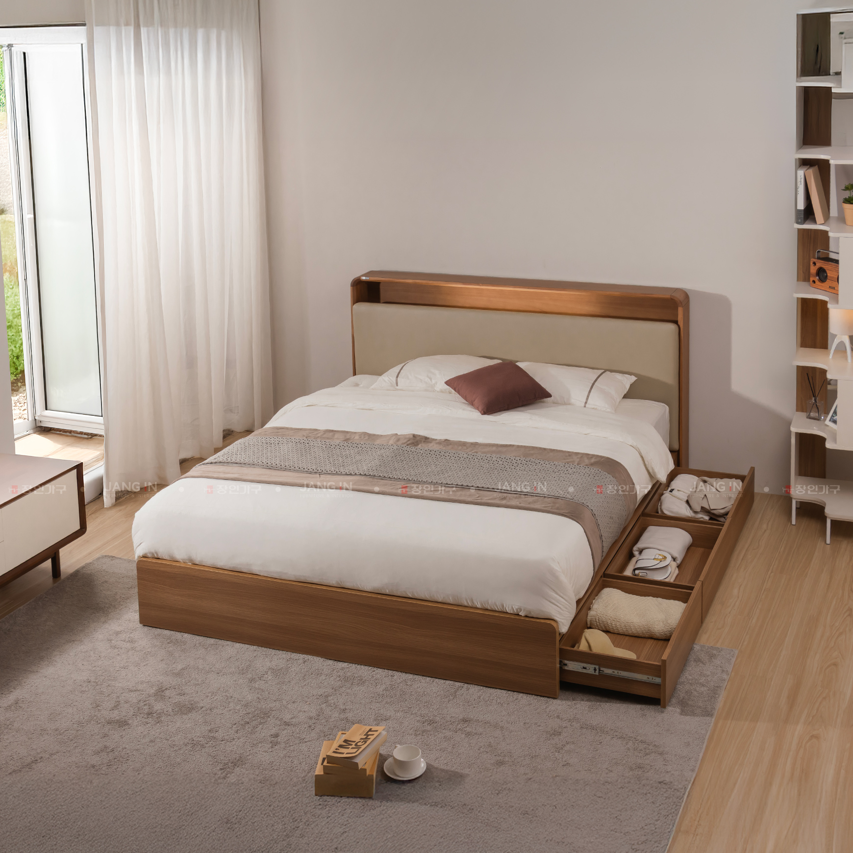 Giường ngủ Frappuccino mang đậm dấu ấn bán cổ điển, sự hòa quyện tinh tế giữa sắc nâu gỗ ấm áp và màu Ivory trang nhã tạo nên một không gian hài hòa và quyến rũ. Điểm nhấn đặc biệt là đầu giường tích hợp sạc và đèn thông minh, mang đến sự tiện lợi tối đa cho người sử dụng. Sự kết hợp hoàn hảo giữa gỗ Xoan tự nhiên và nệm bọc PVC êm ái ở đầu giường tạo cảm giác thoải mái và dễ chịu. Với hai lựa chọn kích thước 1m6 và 1m8, giường Frappuccino dễ dàng phù hợp với mọi không gian phòng ngủ.