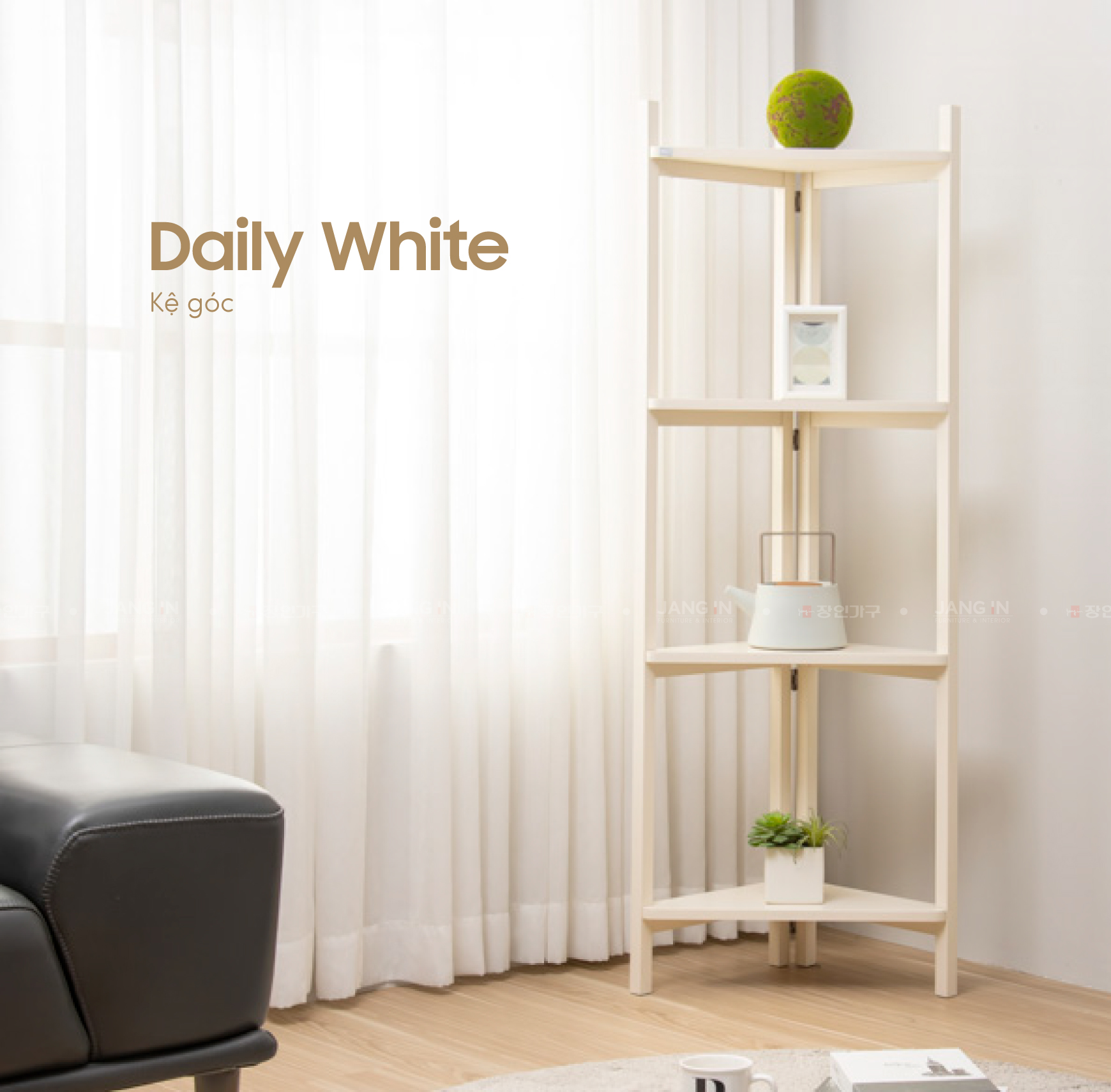 Kệ góc Daily White có thiết kế tinh tế và đẹp mắt được làm từ gỗ cao su tự nhiên mang lại cho bạn một không gian sống ấm cúng và lịch lãm.