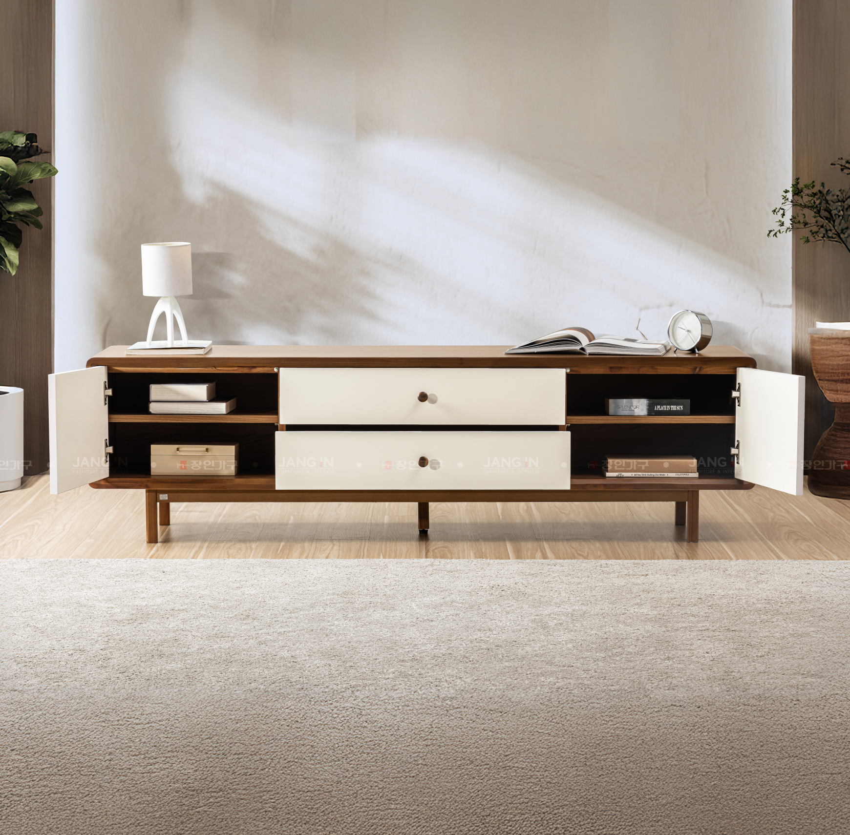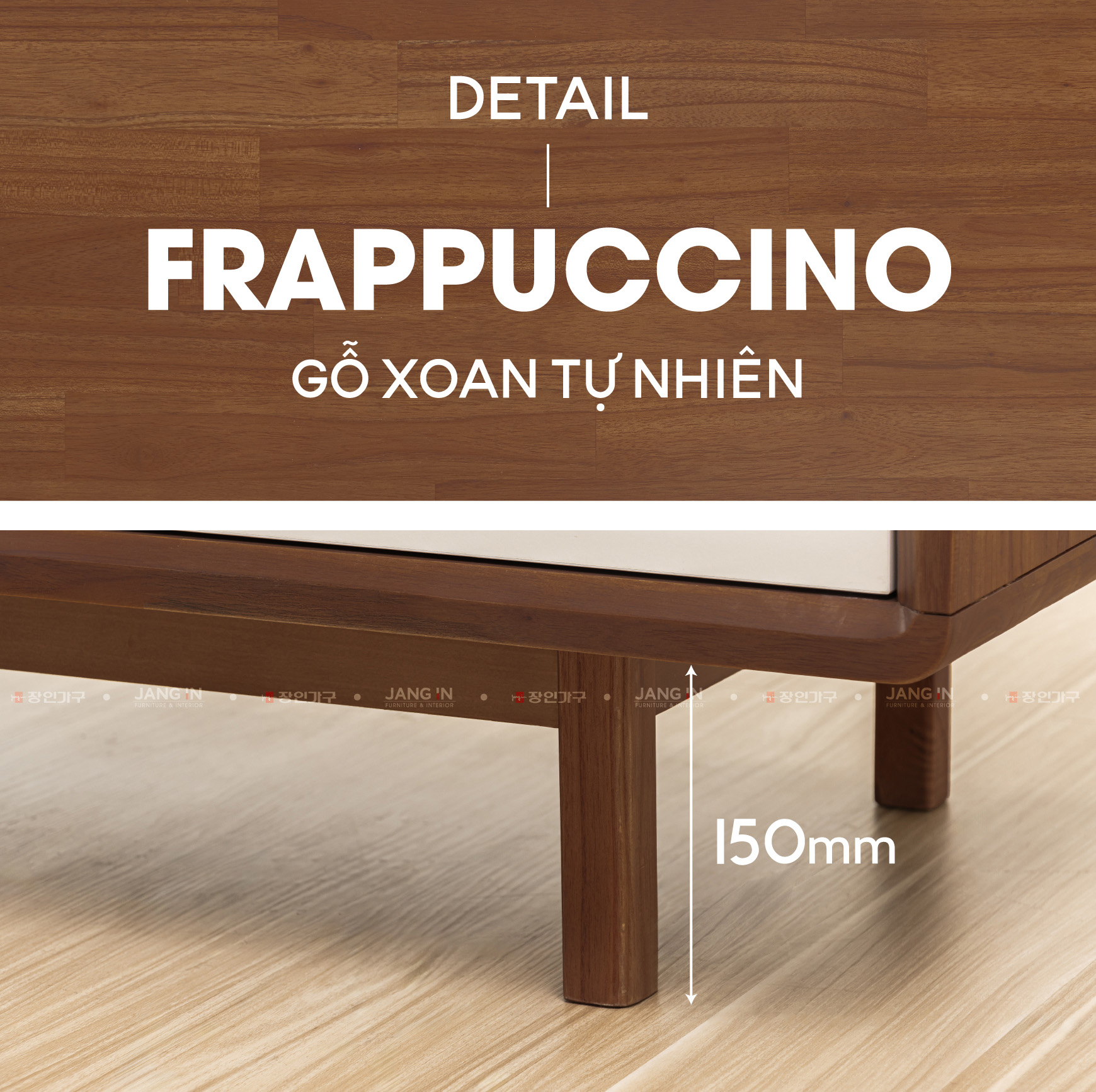Kệ tivi Frappuccino được làm từ gỗ xoan tự nhiên cao cấp, kết hợp với cửa tủ màu trắng tinh tế. Thiết kế ngăn chứa rộng rãi, tay nắm kim loại tạo nên sự sang trọng và tiện dụng. Sản phẩm là sự lựa chọn hoàn hảo cho những ai yêu thích phong cách hiện đại và muốn tạo điểm nhấn cho không gian sống.