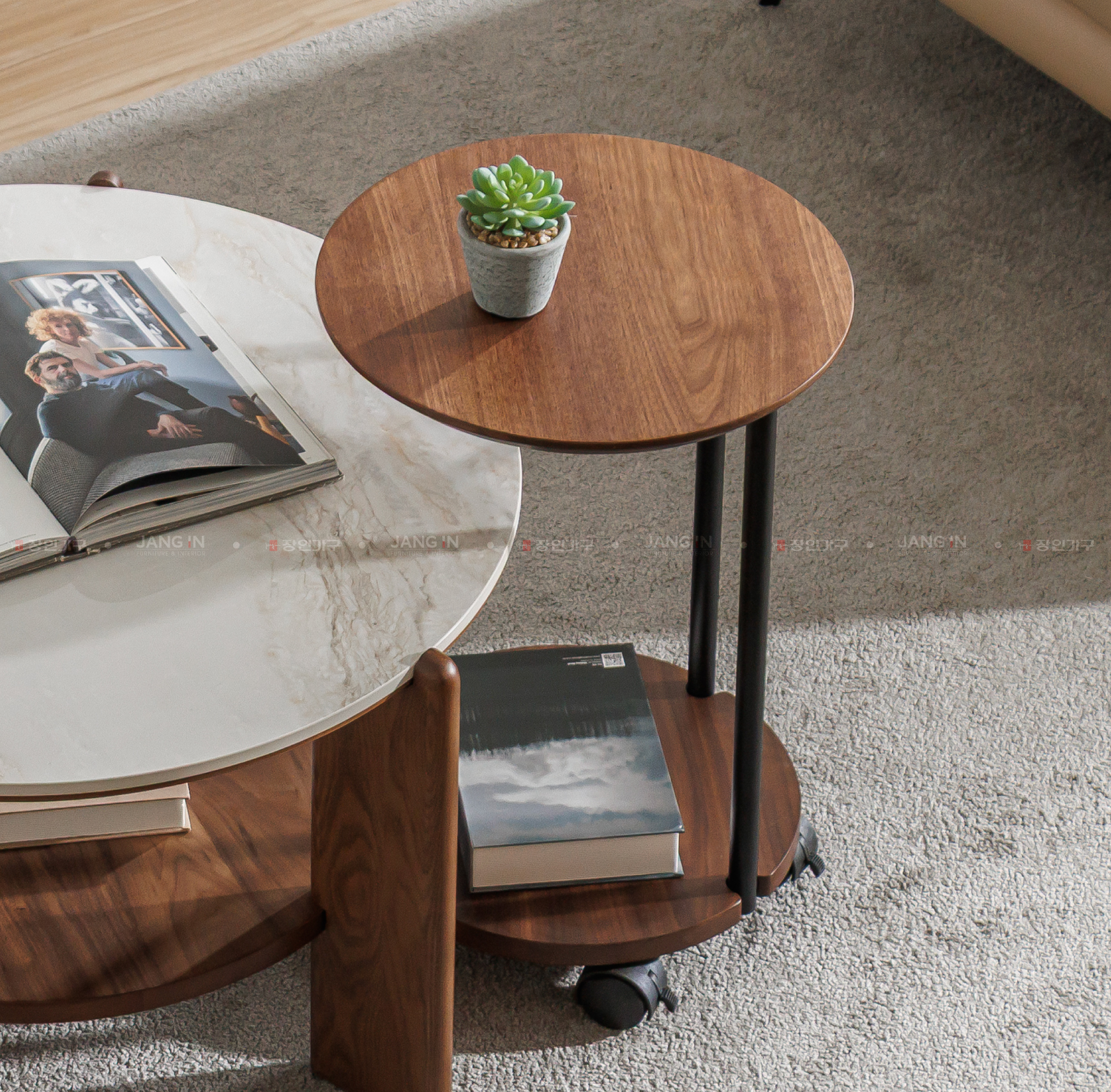 Mặt bàn trên và dưới được làm từ gỗ tần bì tự nhiên, kết hợp khung và chân sắt sơn tĩnh điện chắc chắn. Thiết kế hài hòa, linh hoạt sử dụng làm bàn bên sofa hoặc phối hợp cùng bàn trà tròn, bàn trà màu gỗ, phù hợp nhiều không gian nội thất.