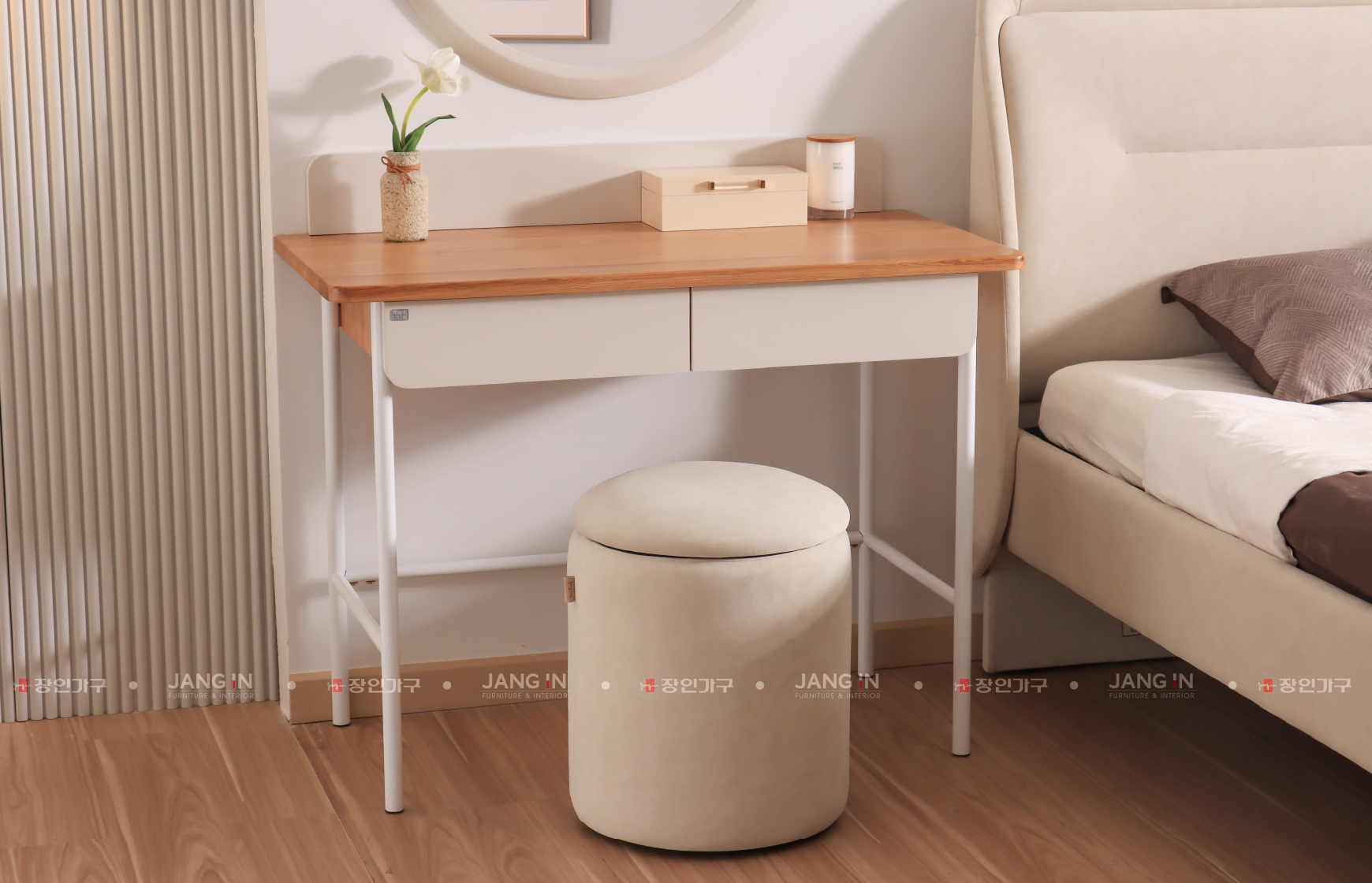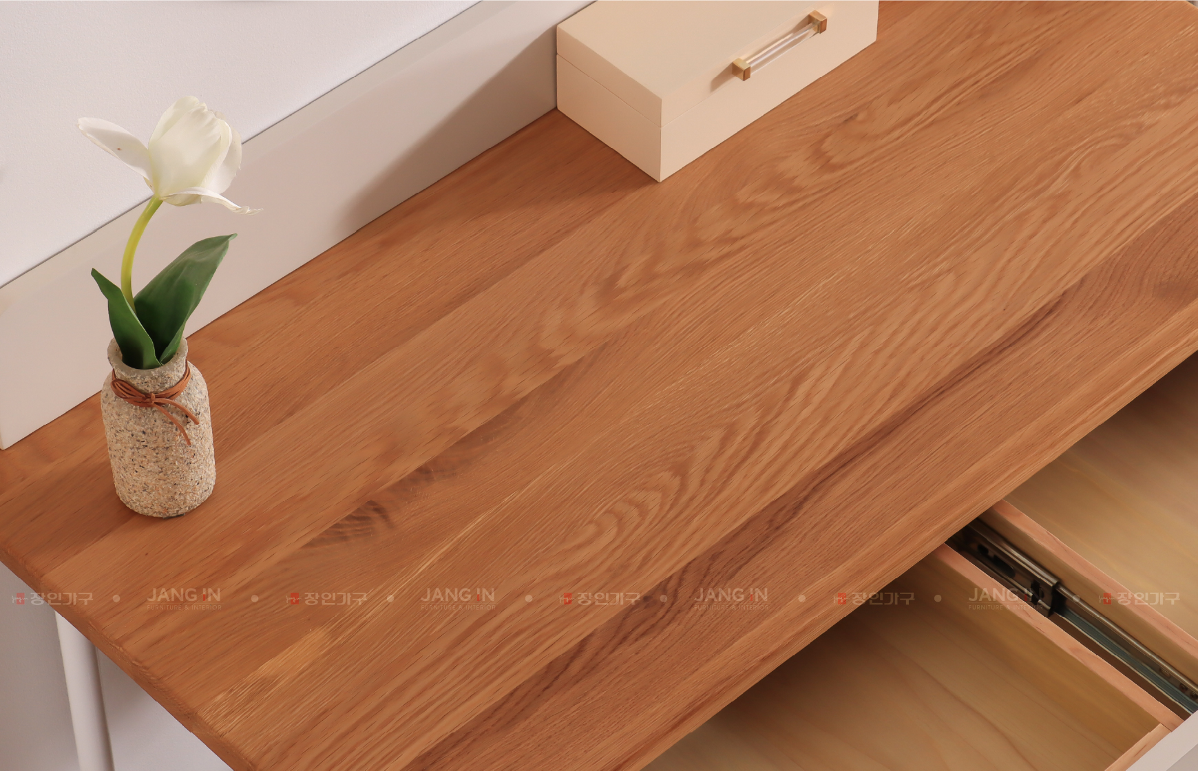 với mặt gỗ sồi màu tự nhiên. Với ngăn kéo & kích thước hợp lý
