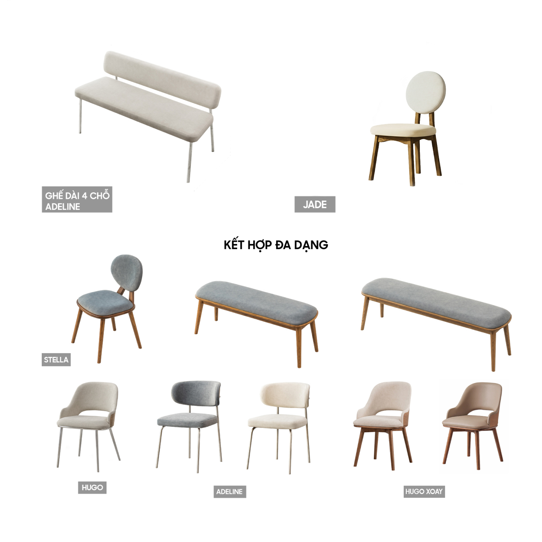 Bàn có thể bán riêng hoặc kết hợp với các loại ghế khác tùy thích