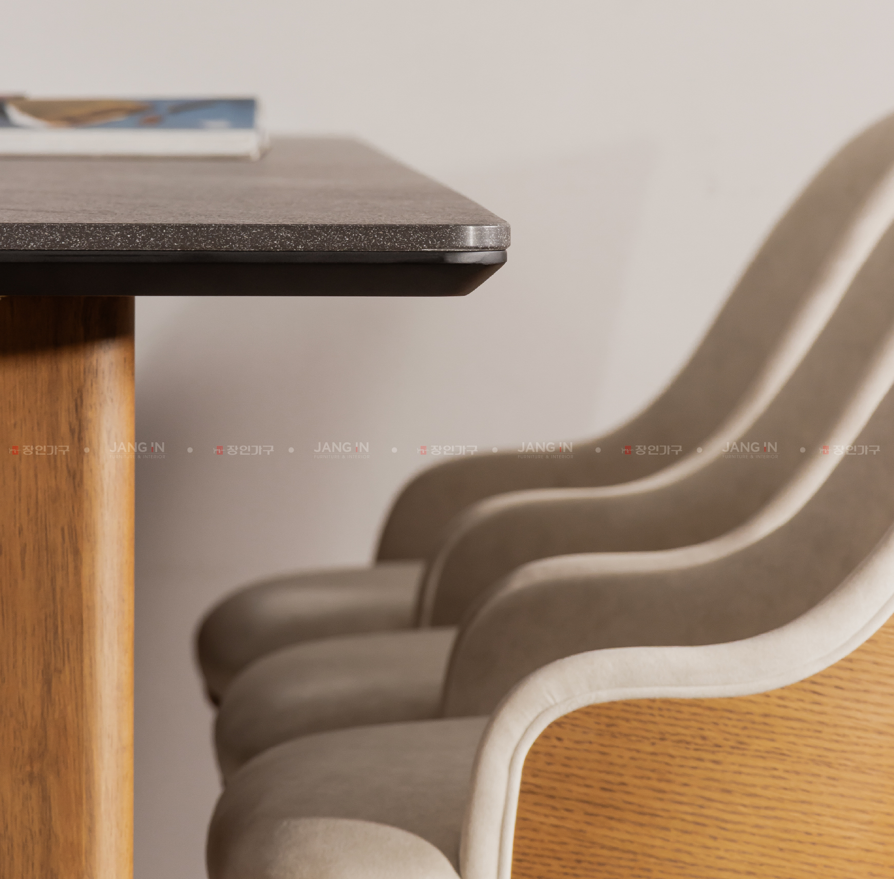 Chân bàn thiết kế chữ T với các đường cong tinh tế là điểm nhấn của sản phẩm.