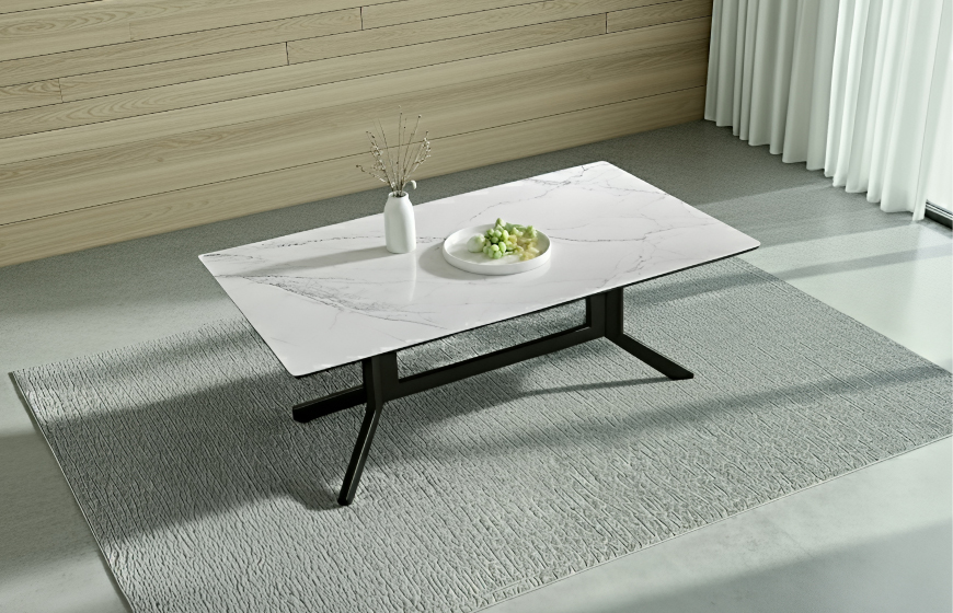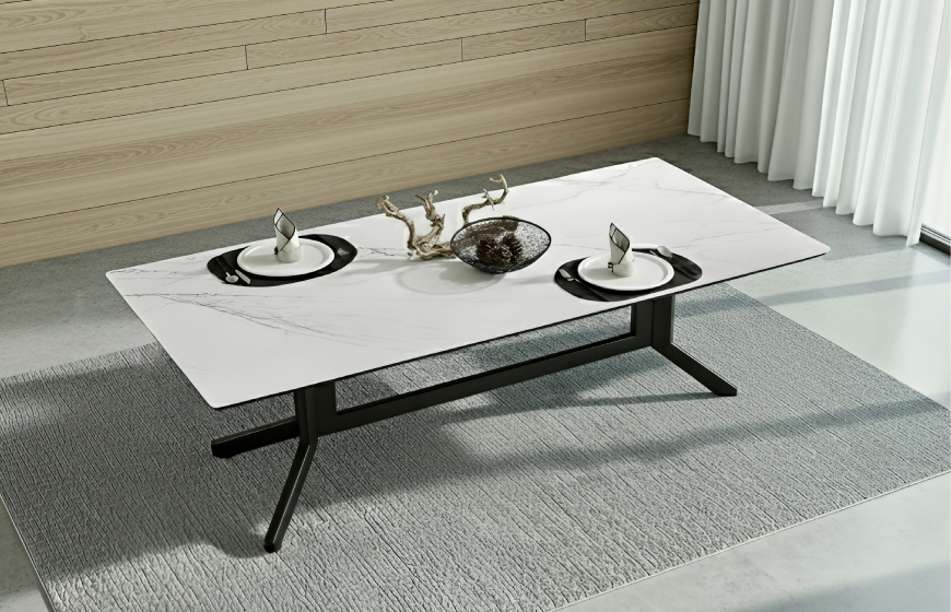 Chân bàn hình chữ X tạo cảm giác không gian mở / Cạnh bàn được gia công khéo léo tạo góc xiên