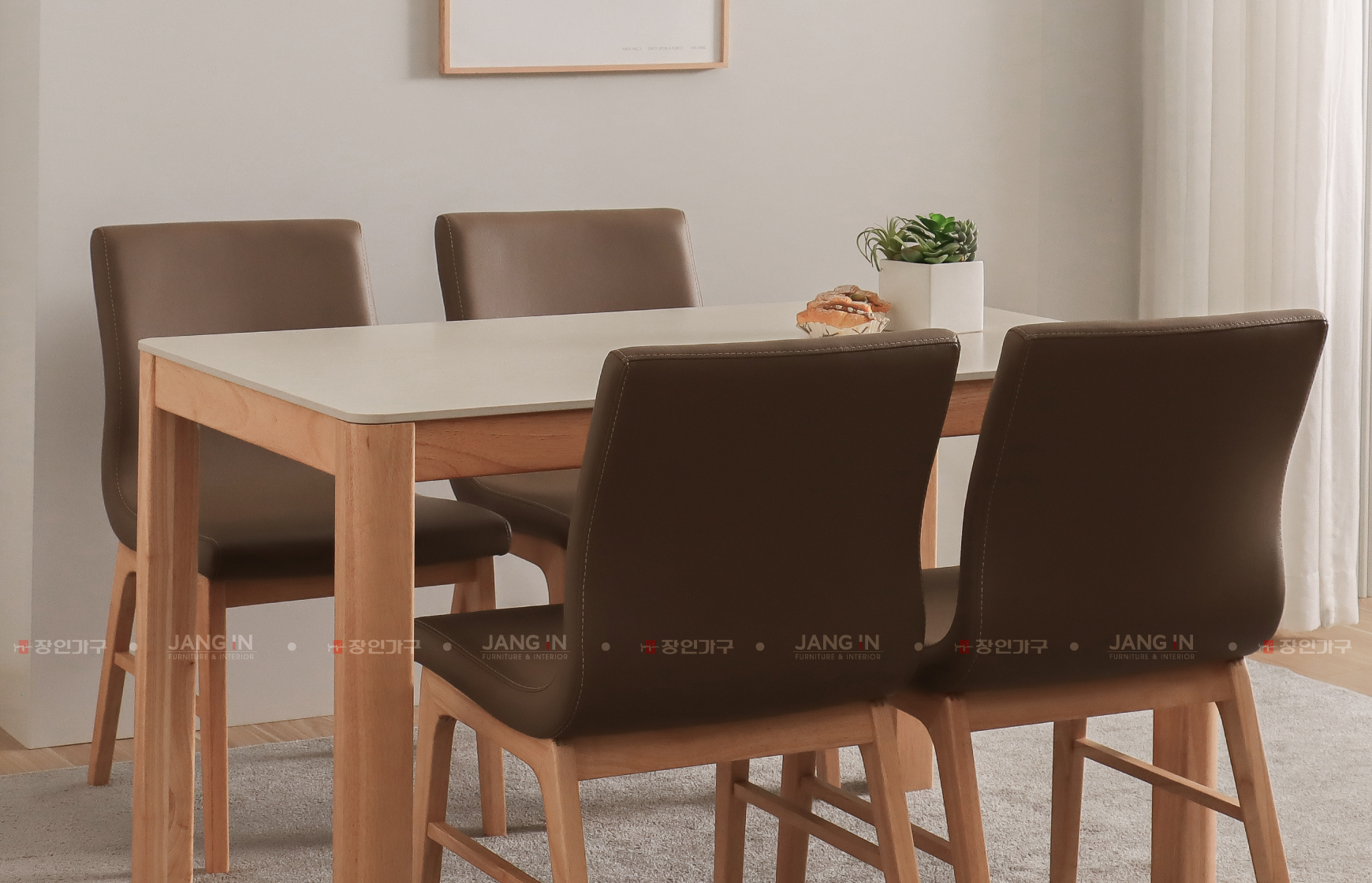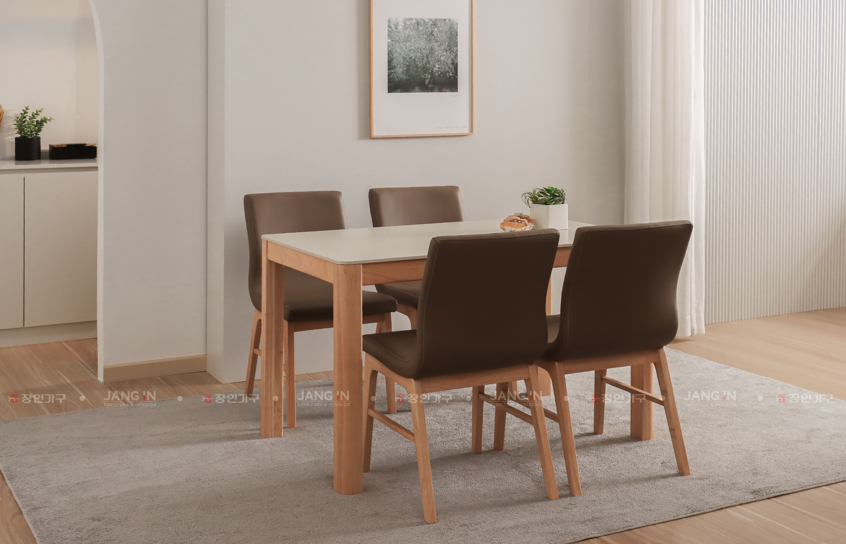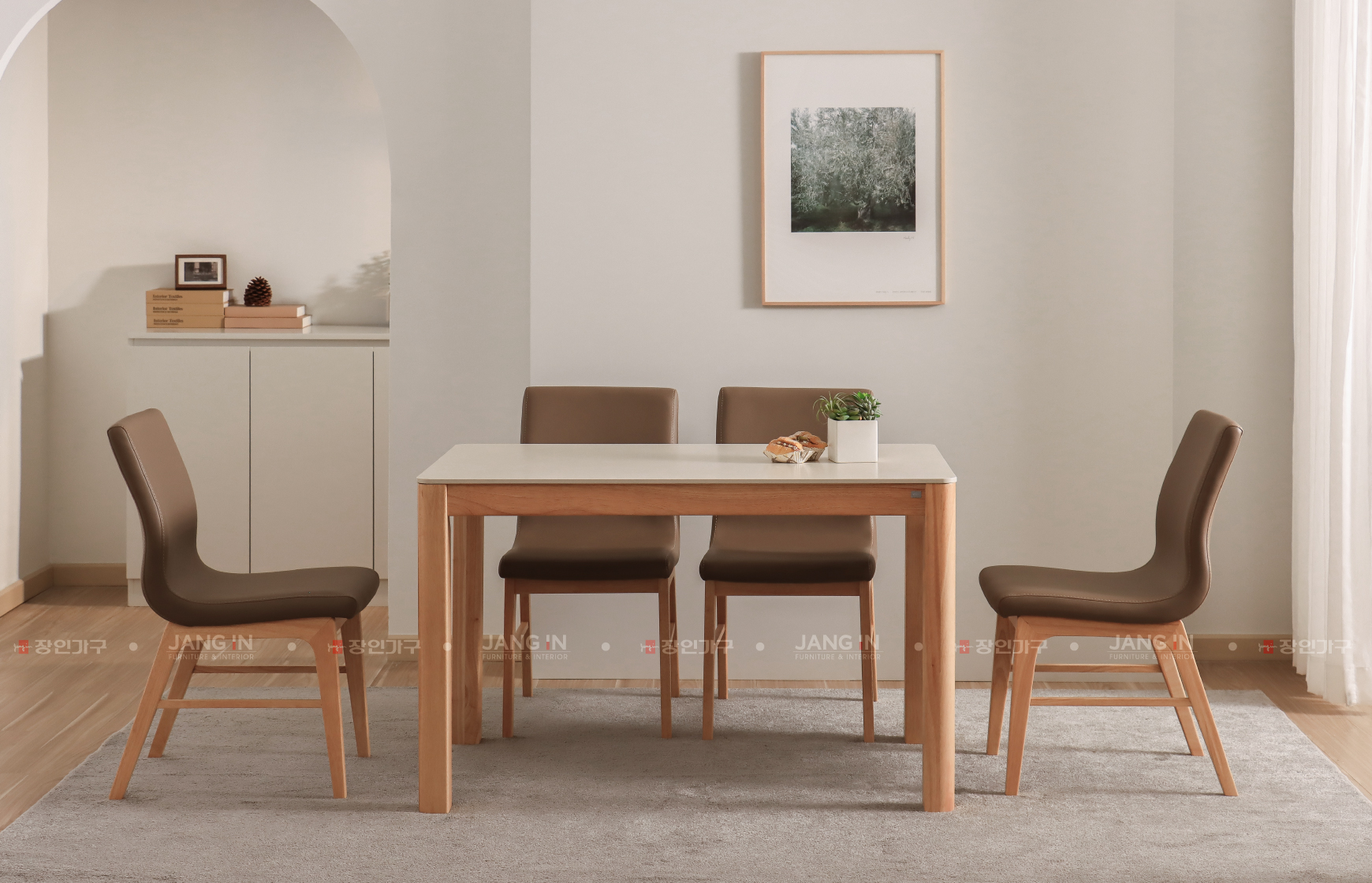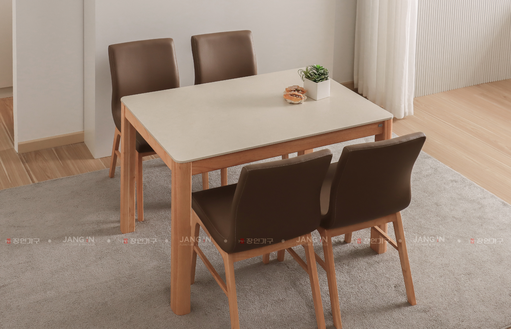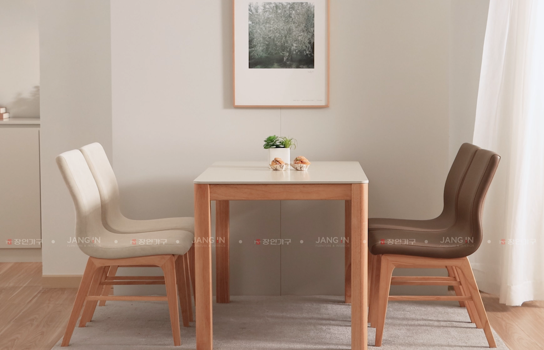 Bàn ăn Nordic 4 chỗ có mặt Ceramic Beige kết hợp khung gỗ cao su tự nhiên. Thiết kế đơn giản, dễ vệ sinh, phù hợp không gian bếp nhỏ gọn.