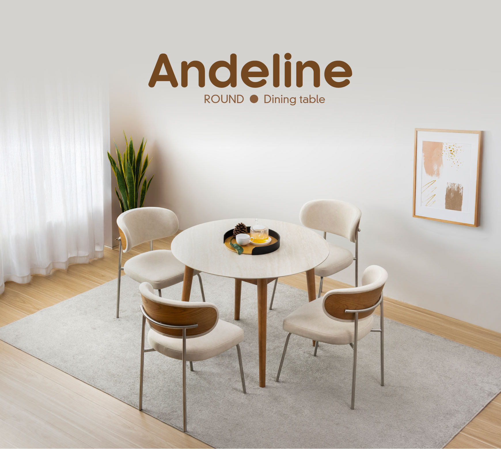Bộ bàn ăn mặt tròn Adeline ceramic cao cấp và chân gỗ cao su tự nhiên này mang đến vẻ đẹp hiện đại, sang trọng cho không gian ăn uống của bạn. Mặt bàn Ceramic chống trầy xước, dễ lau chùi, trong khi lưng ghế được làm từ Plywood với nhiều đường vân to nổi bật, tạo cảm giác ấm cúng và chắc chắn. Thiết kế tinh tế của bộ bàn ăn phù hợp với nhiều phong cách nội thất.