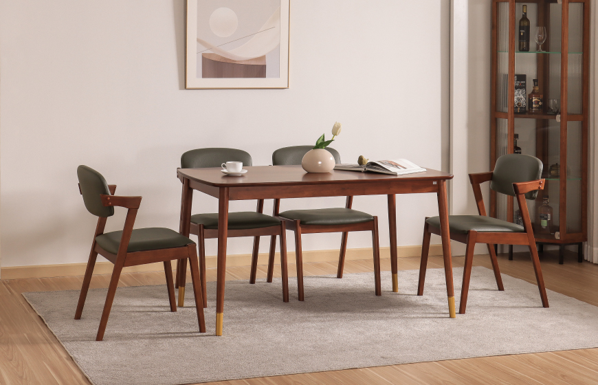 Thân bàn được thiết kế cách điệu, tinh tế trên phần khung gỗ chắc chắn, phủ sơn đen mờ, chất liệu gỗ cao su tự nhiên.