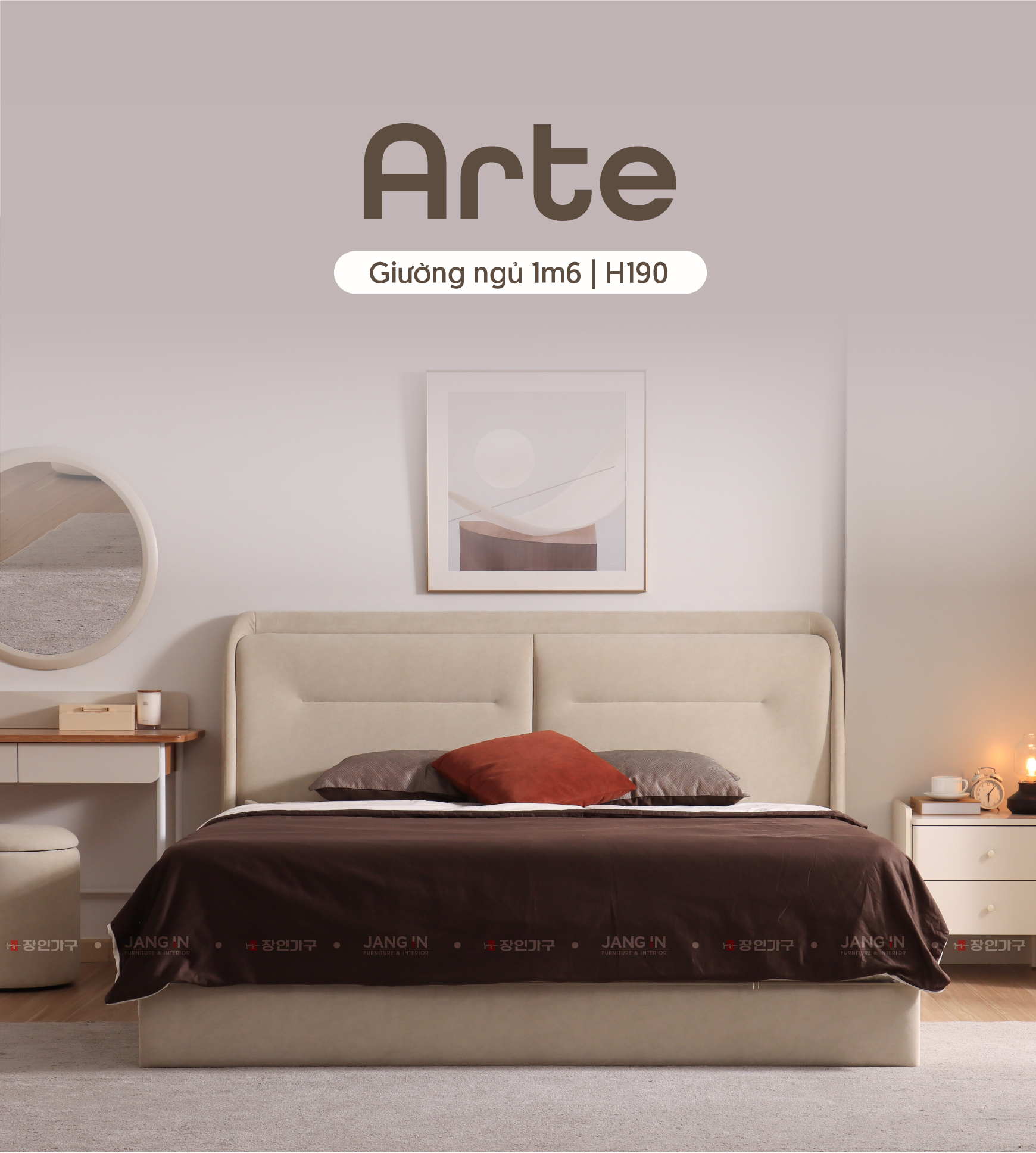 Giường Arte 1m6 được thiết kế theo phong cách hiện đại với tone màu Light Beige thanh lịch. Đầu giường và khung giường bọc vải Maxtrytex cao cấp, mang đến sự mềm mại và thoải mái khi sử dụng. Chân giường gỗ cao su chắc chắn, có thể điều chỉnh độ cao để phù hợp với nhiều loại nệm. Đây là lựa chọn lý tưởng cho không gian phòng ngủ tinh tế và tiện nghi.