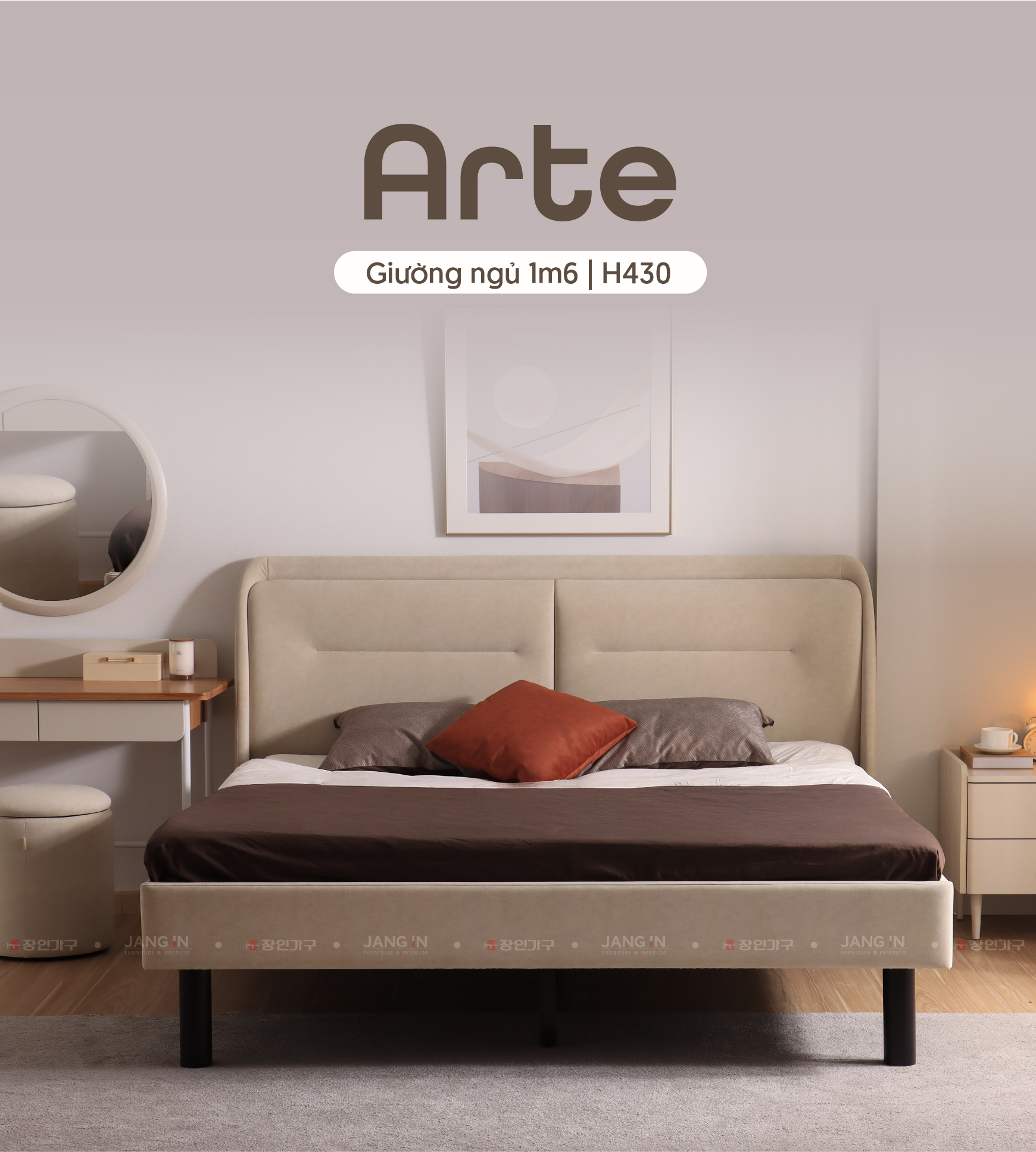 Giường Arte 1m6 được thiết kế theo phong cách hiện đại với tone màu Light Beige thanh lịch. Đầu giường và khung giường bọc vải Maxtrytex cao cấp, mang đến sự mềm mại và thoải mái khi sử dụng. Chân giường gỗ cao su chắc chắn, có thể điều chỉnh độ cao để phù hợp với nhiều loại nệm. Đây là lựa chọn lý tưởng cho không gian phòng ngủ tinh tế và tiện nghi.