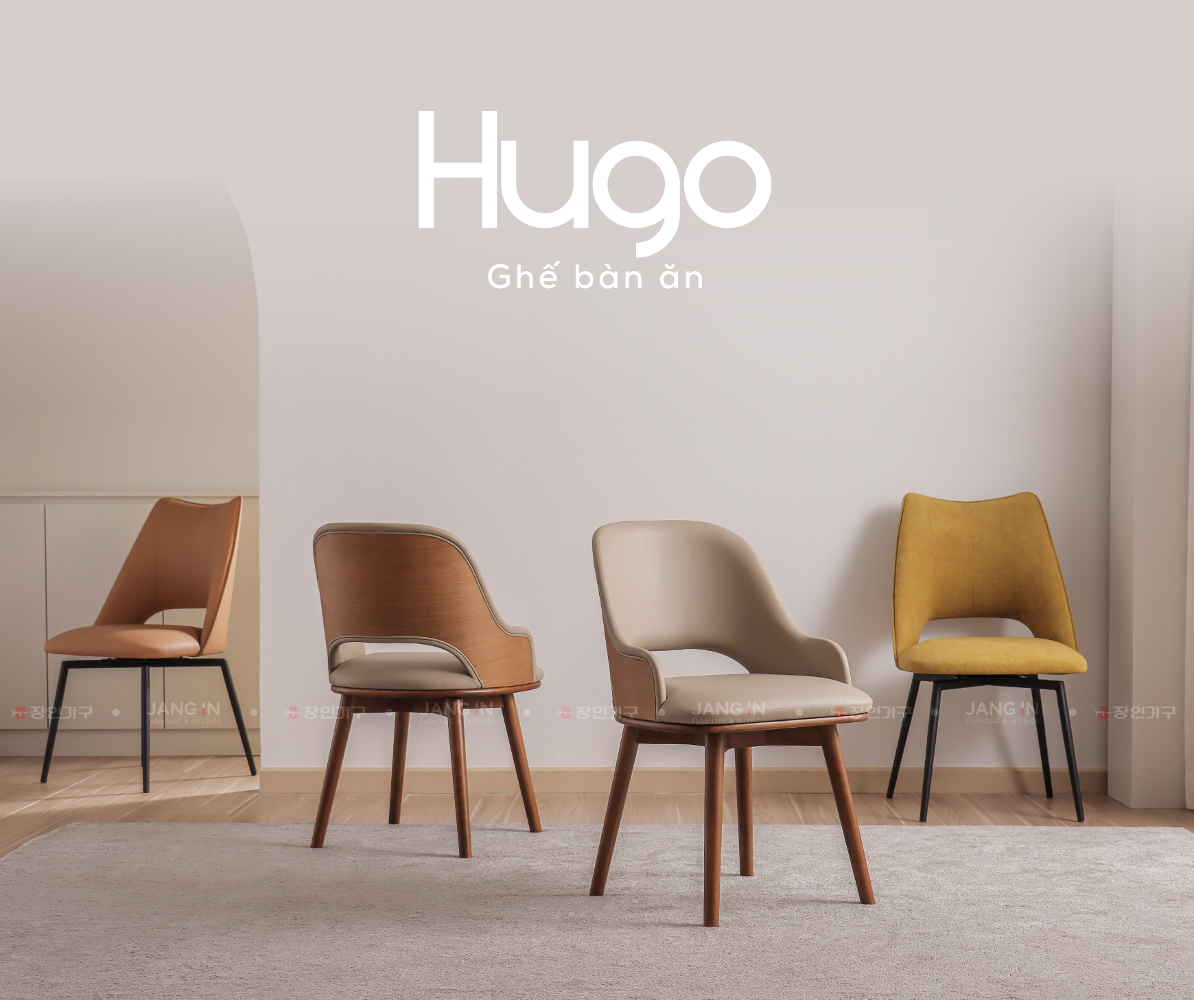 Ghế bàn ăn Hugo Nomad Xoay là phiên bản cao cấp tiếp nối thành công của dòng Hugo, được bọc da PVC chất lượng, mang lại vẻ đẹp hiện đại và khả năng dễ dàng vệ sinh vượt trội. Với thiết kế lưng ghế bo cong hình chữ U độc đáo, sản phẩm không chỉ ôm trọn dáng ngồi mà còn tích hợp chức năng xoay tự hồi về trạng thái ban đầu, tối ưu hóa sự thoải mái và tiện lợi. Sự kết hợp hài hòa giữa chất liệu gỗ cao su tự nhiên vững chãi, Plywood và Da PVC đảm bảo độ bền vững và chất lượng vượt thời gian theo cam kết của Jang In – Nội thất Hàn Quốc.