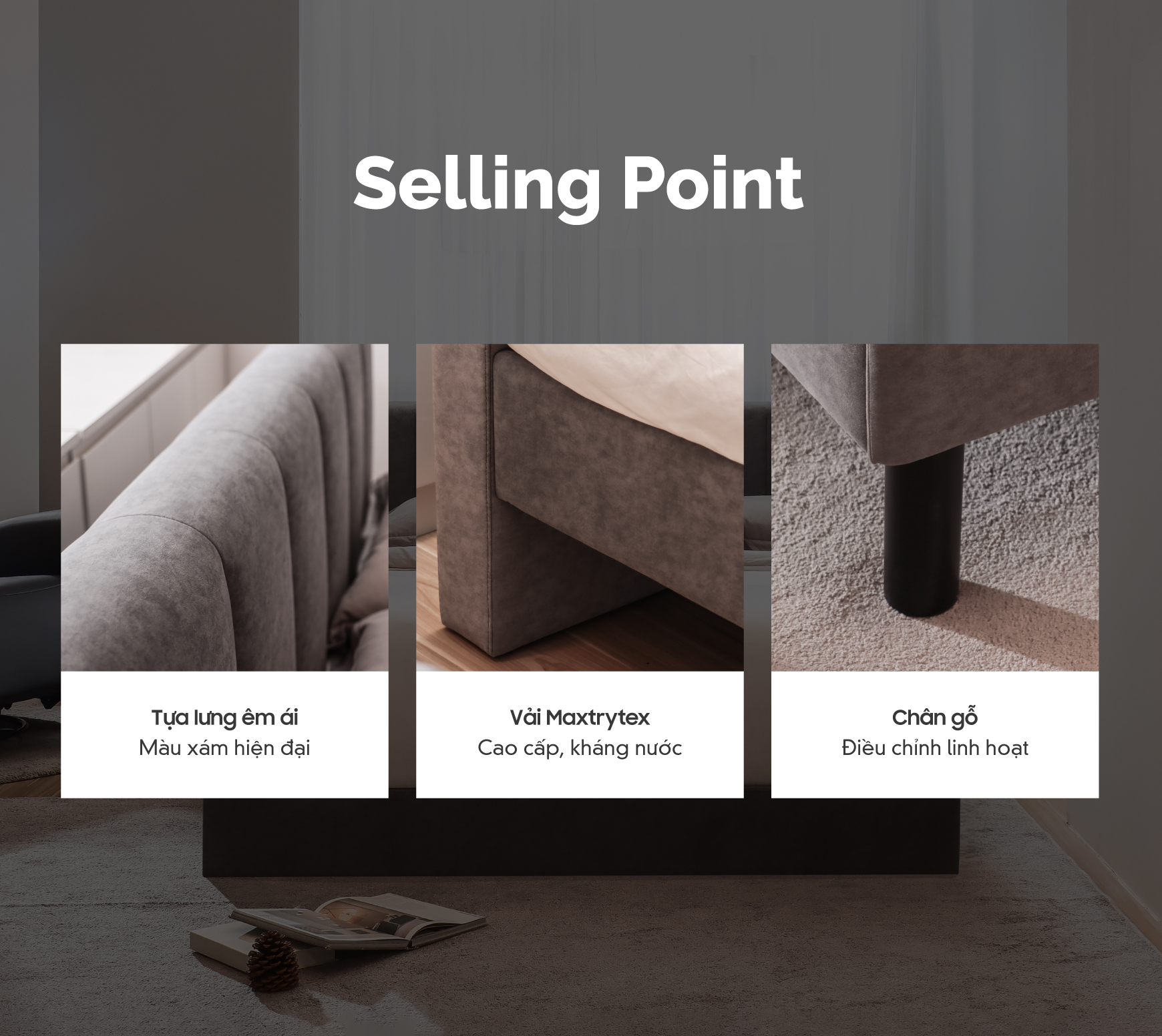 Đầu và thân giường được bọc vải Siêu Tính Năng