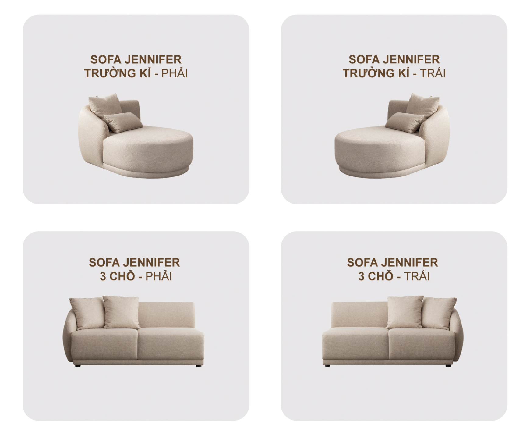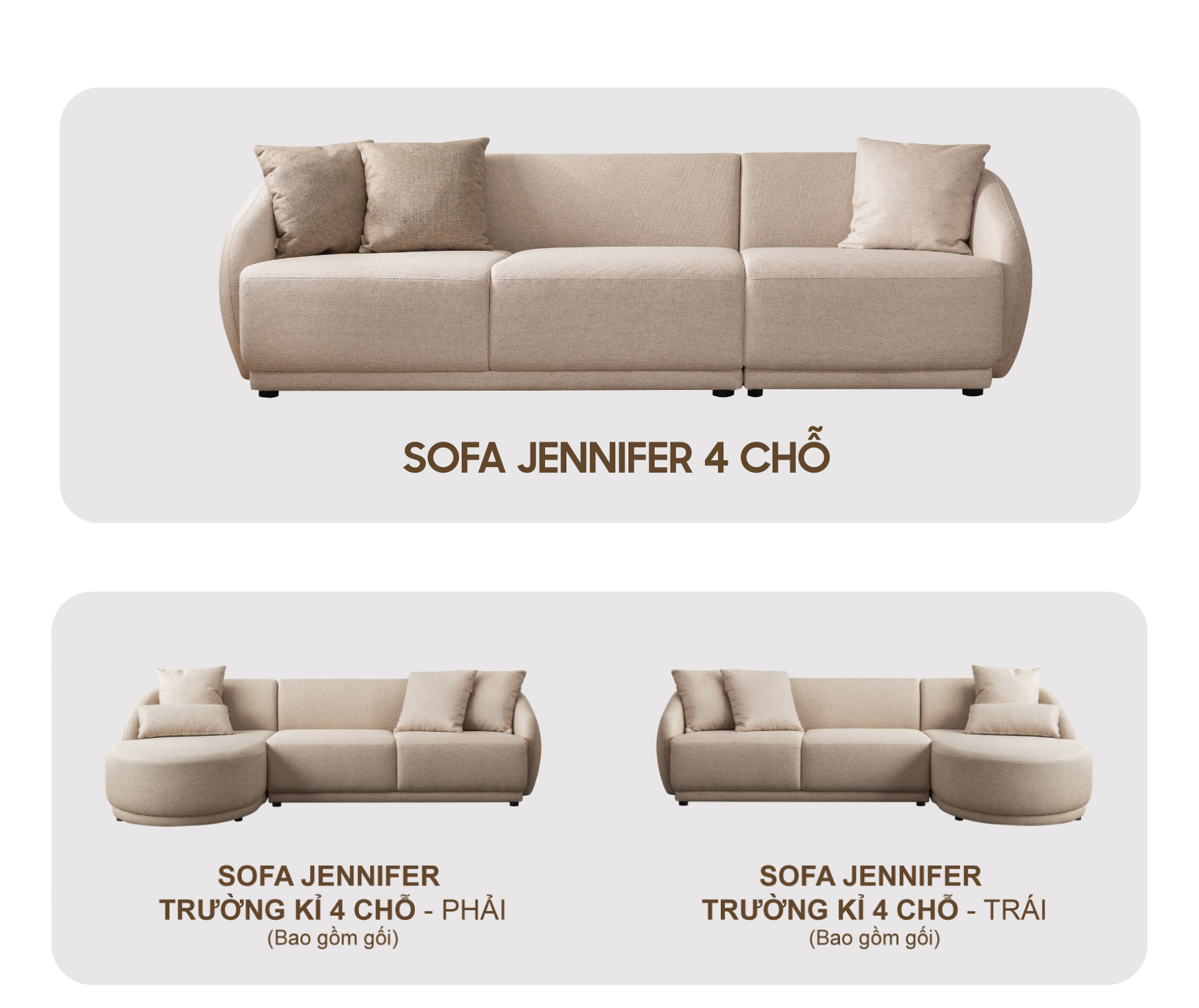 • Giá bán sản phẩm sofa Jennifer không bao gồm giá gối.
