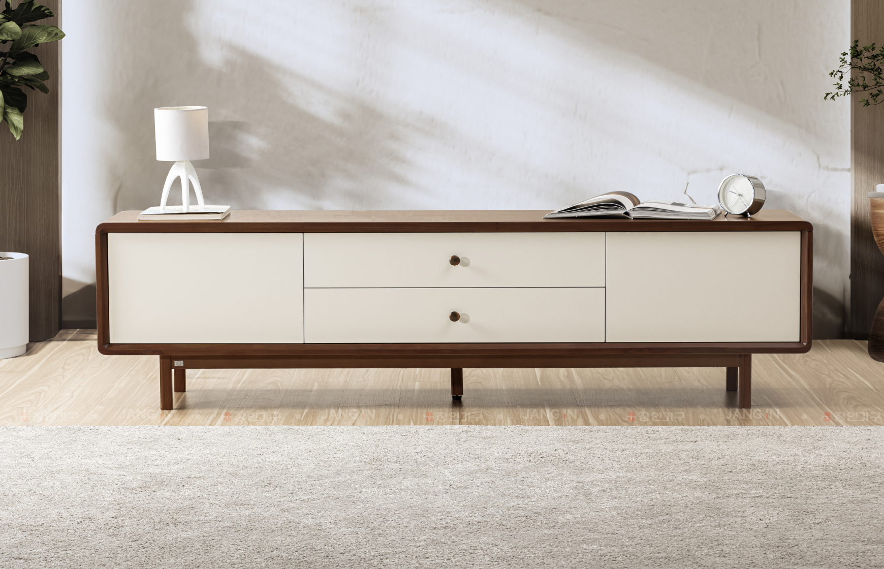 Kệ TV Frappuccino được làm từ gỗ xoan tự nhiên cao cấp, kết hợp với cửa tủ Melamine màu trắng tinh tế. Thiết kế ngăn chứa rộng rãi, tay nắm kim loại tạo nên sự sang trọng và tiện dụng. Sản phẩm là sự lựa chọn hoàn hảo cho những ai yêu thích phong cách hiện đại và muốn tạo điểm nhấn cho không gian sống.
