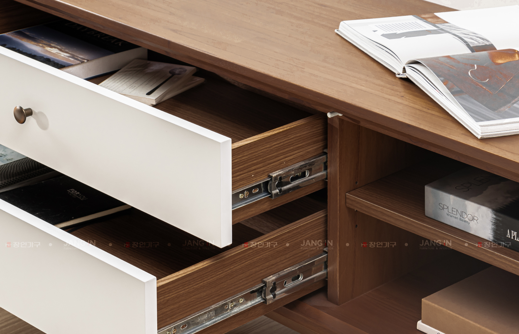 Kệ tivi được trang bị ngăn kéo trượt mượt mà cùng với hệ thống bản lề chất lượng cao, giúp bạn dễ dàng sử dụng mà không lo bị kẹt