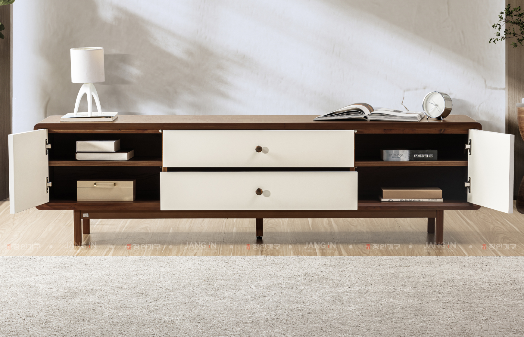 Không gian rộng rãi phía dưới giúp bạn lưu trữ gọn gàng các thiết bị giải trí như đầu DVD, loa, sách báo, hoặc các vật dụng trang trí.