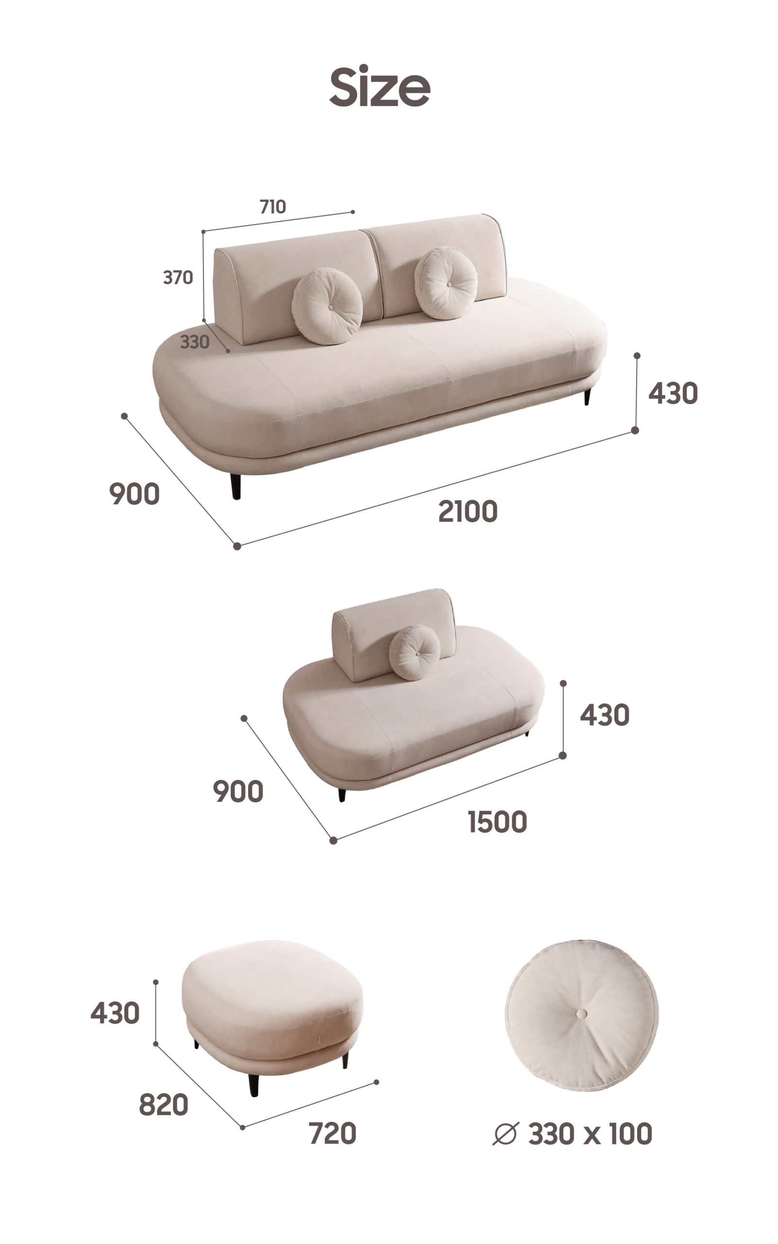 Sofa Joy mang thiết kế hiện đại với đường nét bo tròn mềm mại, tạo cảm giác thoải mái và trẻ trung cho không gian sống. Sản phẩm có nhiều lựa chọn kích thước và màu sắc, phù hợp cho phòng khách, phòng ngủ hoặc không gian sinh hoạt gia đình. Chất liệu vải Maxtrytex cao cấp kháng khuẩn, chống bám bụi và chống thấm nước, thân thiện với thú cưng, kết hợp cùng khung gỗ thông và chân kim loại chắc chắn.