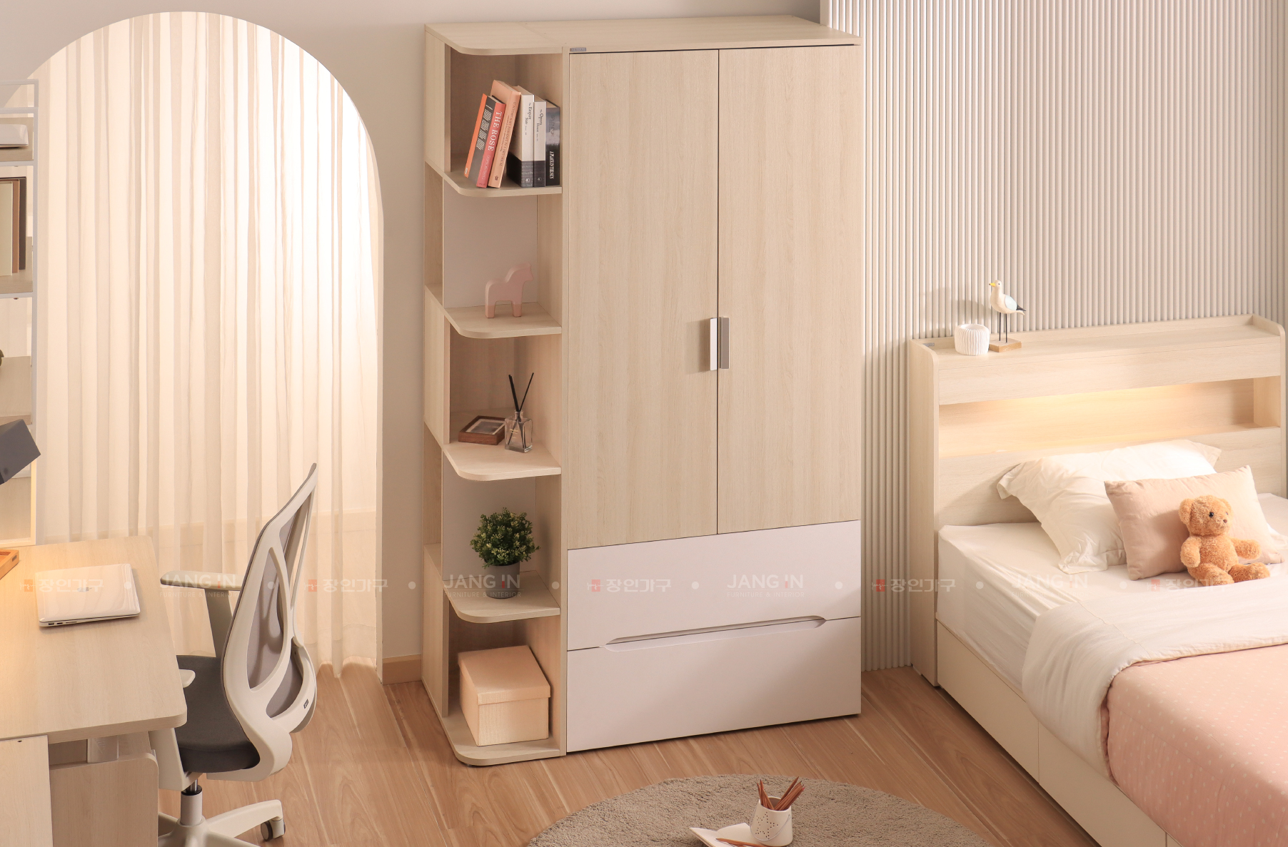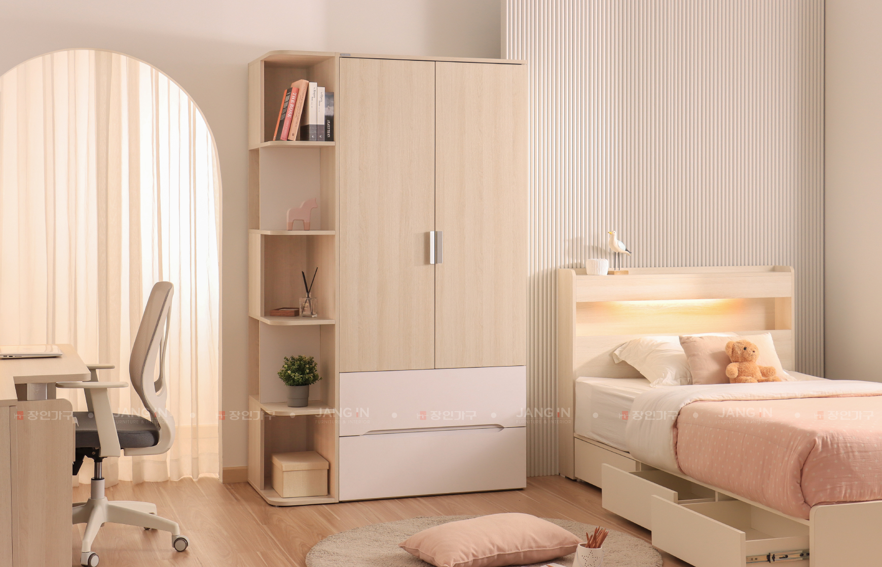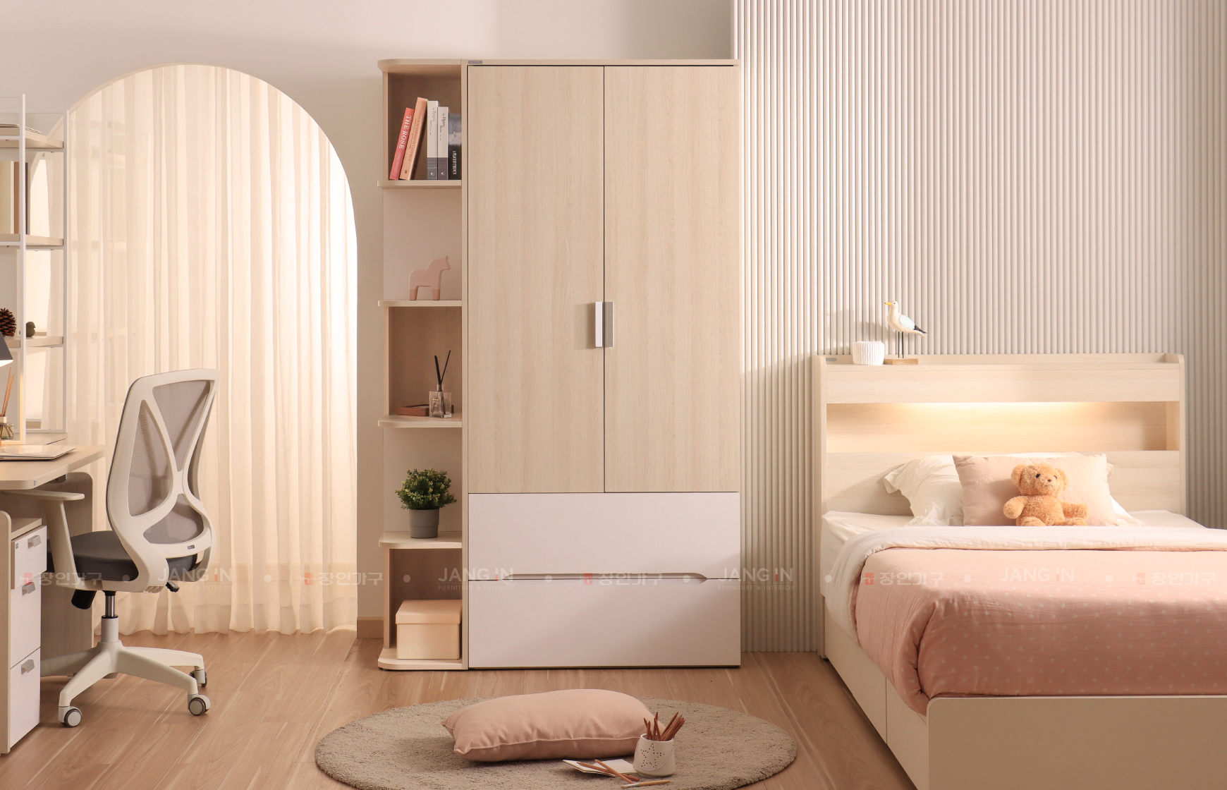 Bộ tủ Nexora bao gồm tủ áo 2 cánh, tủ kệ và hộp lưu trữ, được thiết kế đồng bộ với màu gỗ sáng và kiểu dáng hiện đại. Tủ áo và tủ kệ có chiều cao tương thích, tạo sự liền mạch khi bố trí liền kề. Hộp lưu trữ nhỏ gọn, dễ dàng đặt trong tủ hoặc sử dụng riêng. Toàn bộ sản phẩm sử dụng chất liệu chất liệu thân thiện, đảm bảo an toàn trong thời gian sử dụng, vừa đảm bảo tính thẩm mỹ, vừa thuận tiện trong quá trình sử dụng và bảo quản.
