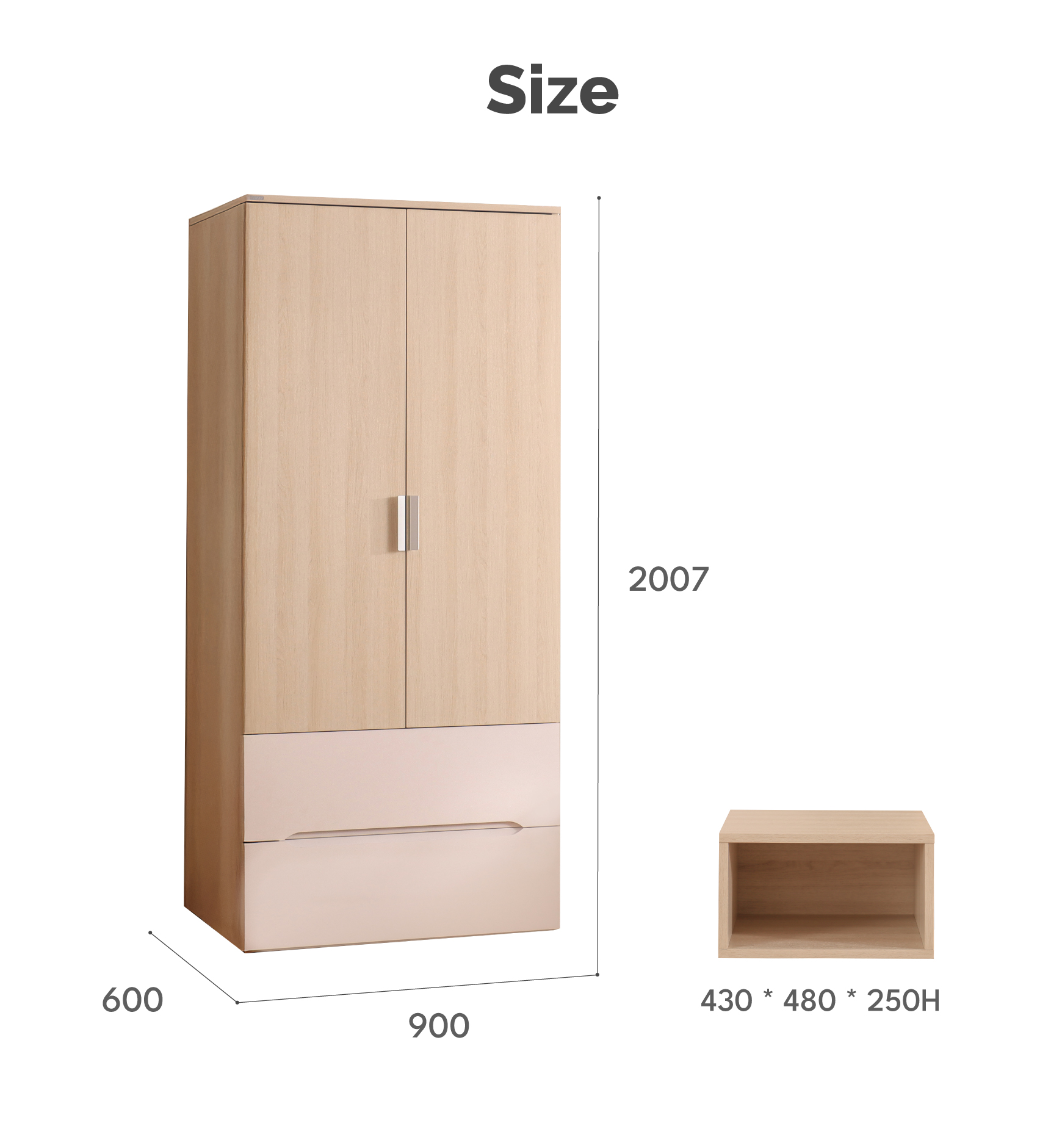 Tủ áo 2 cánh Nexora(900) + Hộp lữu trữ