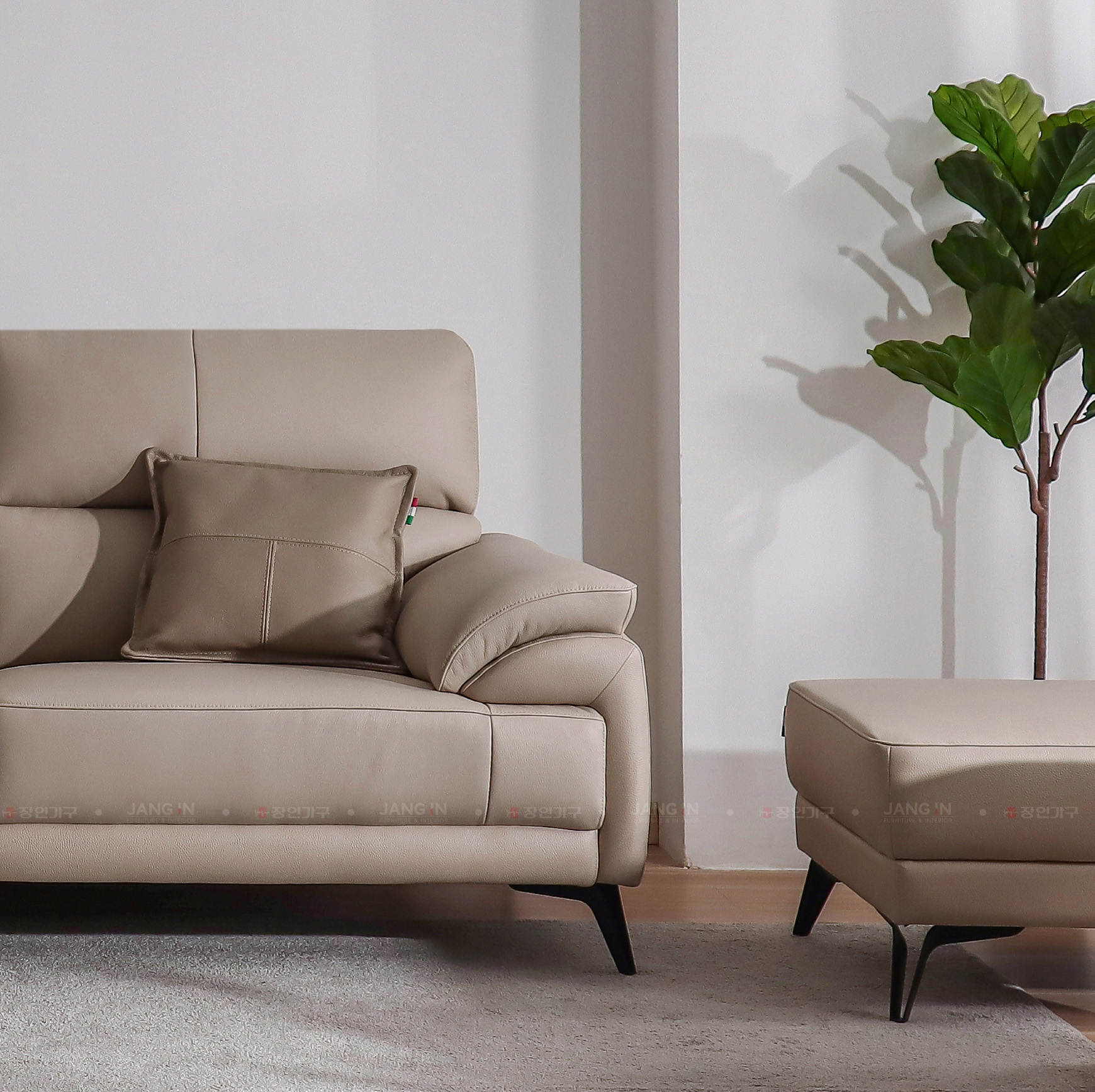 Sofa Capri sử dụng da Italia nhập khẩu, foam mật độ 35kg và khung gỗ thông chắc chắn, đảm bảo độ bền cao và khả năng giữ form vượt trội theo thời gian.