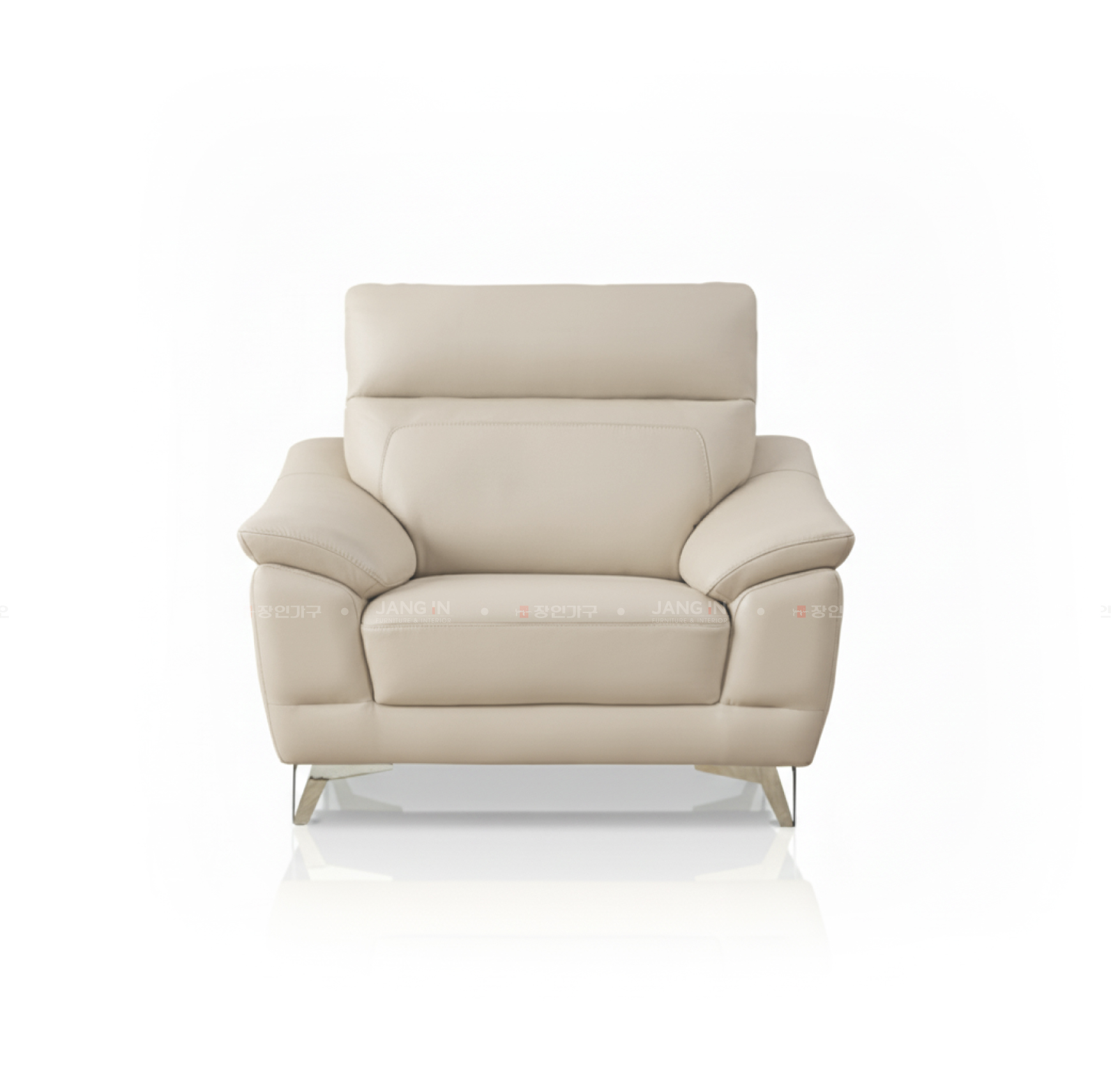 Bề mặt được bọc da nhập khẩu cao cấp cùng gam Ivory trang nhã, tạo nên vẻ đẹp nhẹ nhàng và thanh lịch cho không gian sống. Thiết kế đường may tinh tế trên đệm ngồi không chỉ tạo điểm nhấn thẩm mỹ mà còn hạn chế trơn trượt khi sử dụng. Phần chân kim loại vững chãi giúp tổng thể thêm hiện đại và đảm bảo độ ổn định tuyệt đối.