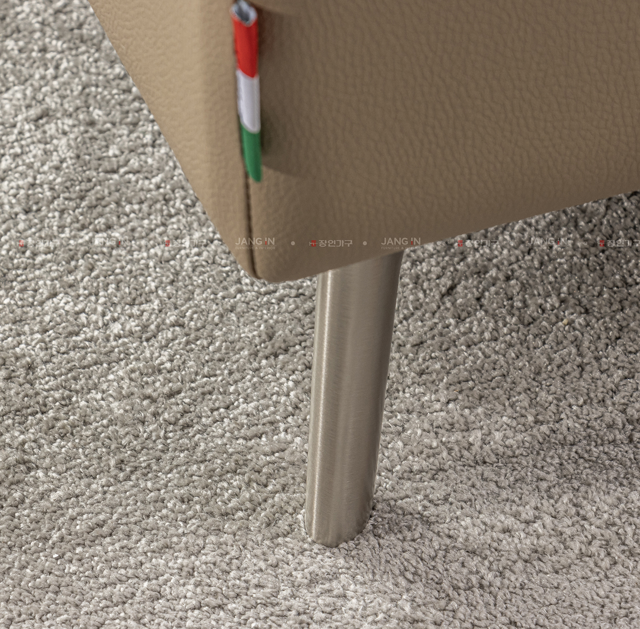 Đệm ngồi được chia thành nhiều mảng nhỏ, hạn chế trơn trượt khi sử dụng đồng thời tạo điểm nhấn tinh tế cho tổng thể thiết kế. Chân sofa làm từ nhôm sáng bóng, cao 150mm, giúp việc vệ sinh sàn trở nên dễ dàng hơn.