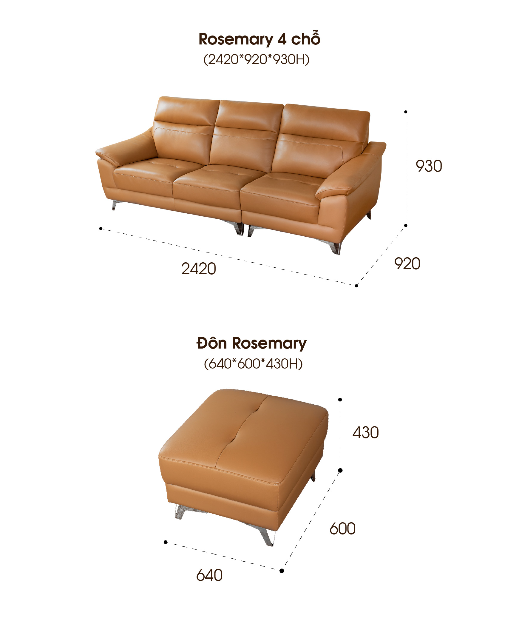 | Tên sản phẩm | Sofa da Rosemary |