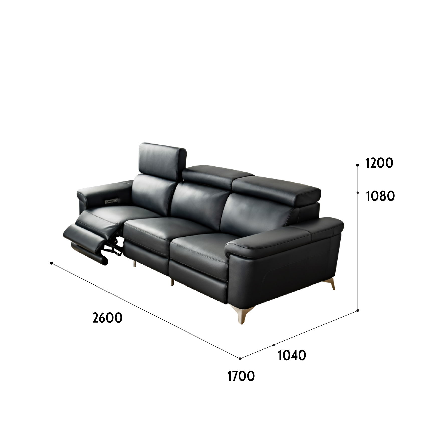 Sofa 4 chỗ: 2580*1040*1080H |