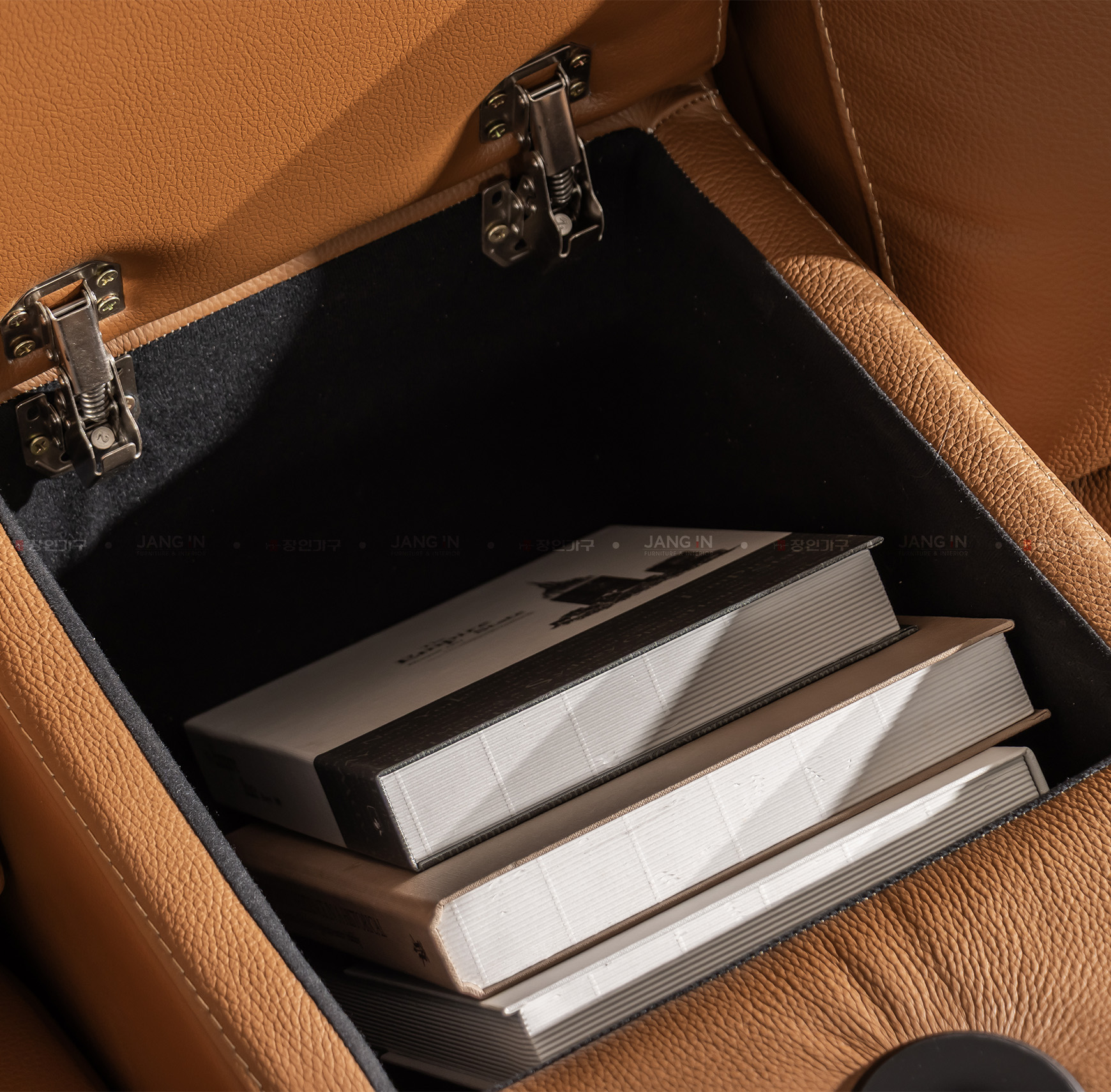 Thiết kế tối giản kết hợp cùng da Italia cao cấp, đi kèm các tiện ích như cổng sạc Type-C, USB, bàn lưu trữ và khay để ly, mang đến trải nghiệm tiện nghi trong từng khoảnh khắc.