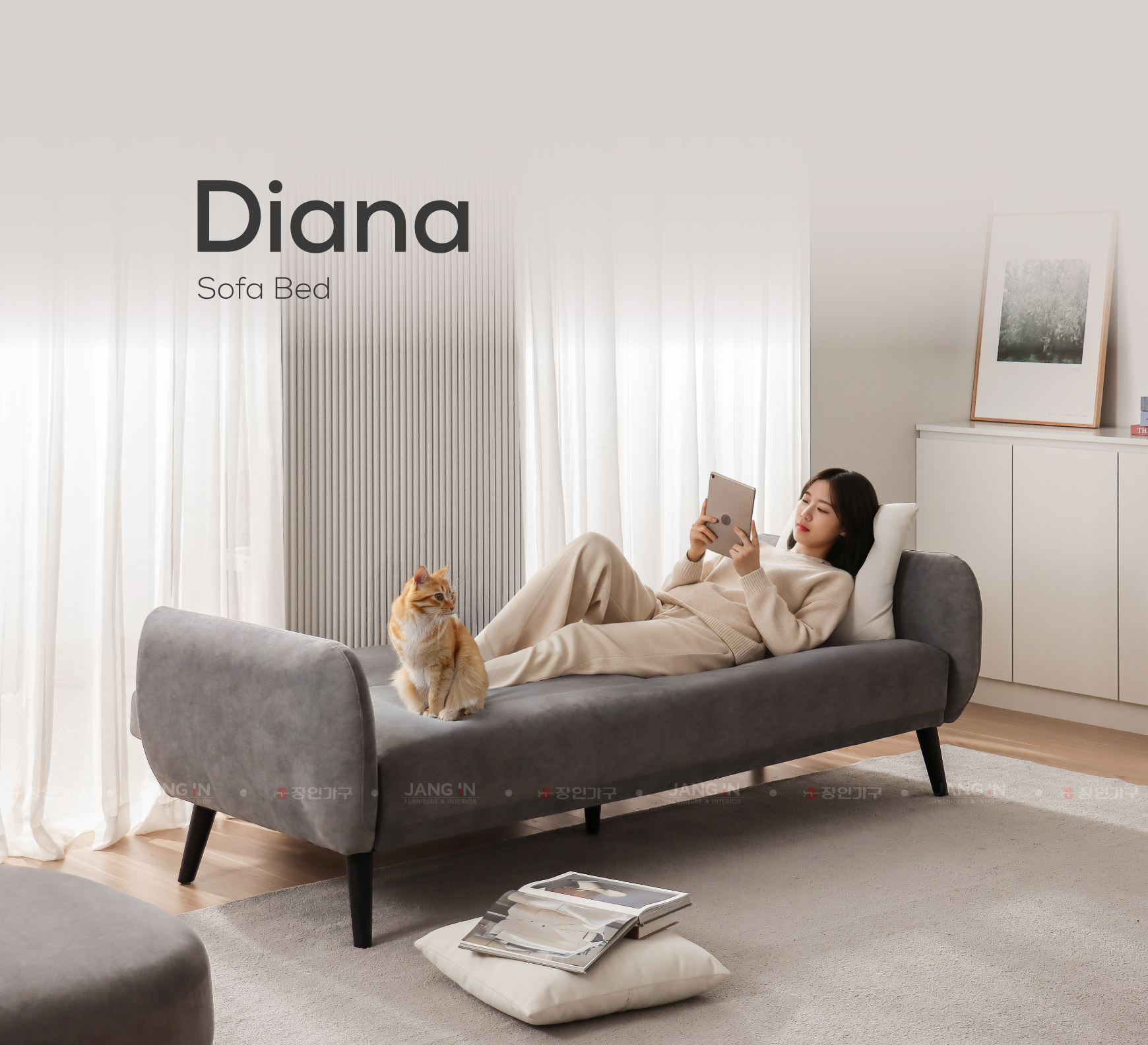 Với cơ chế gập mở linh hoạt, Diana vừa là chiếc sofa tiện nghi cho phòng khách, vừa dễ dàng chuyển đổi thành chiếc giường êm ái, mang lại sự thoải mái tối đa cho những giấc ngủ ngắn hoặc tiếp đón khách ở lại qua đêm.