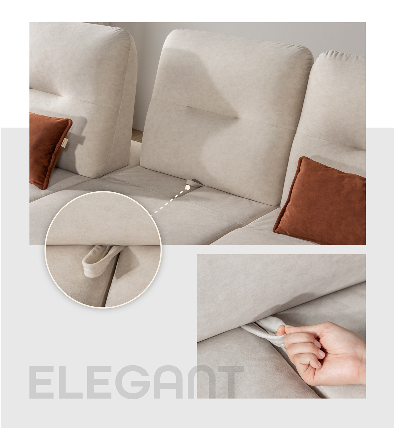 Freya sở hữu đệm lưng dưới ngả khẩu độ 105°~115°, hỗ trợ cột sống hiệu quả và mang lại cảm giác thư giãn tự nhiên. Phần để tay có thể nâng – hạ 4 cấp độ, cho phép người dùng tận dụng như gối kê đầu khi nằm. Đặc biệt, tựa lưng linh hoạt: kéo về trước khi ngồi và ngả về sau khi nằm, giúp gia chủ dễ dàng điều chỉnh theo nhiều mục đích sử dụng khác nhau.