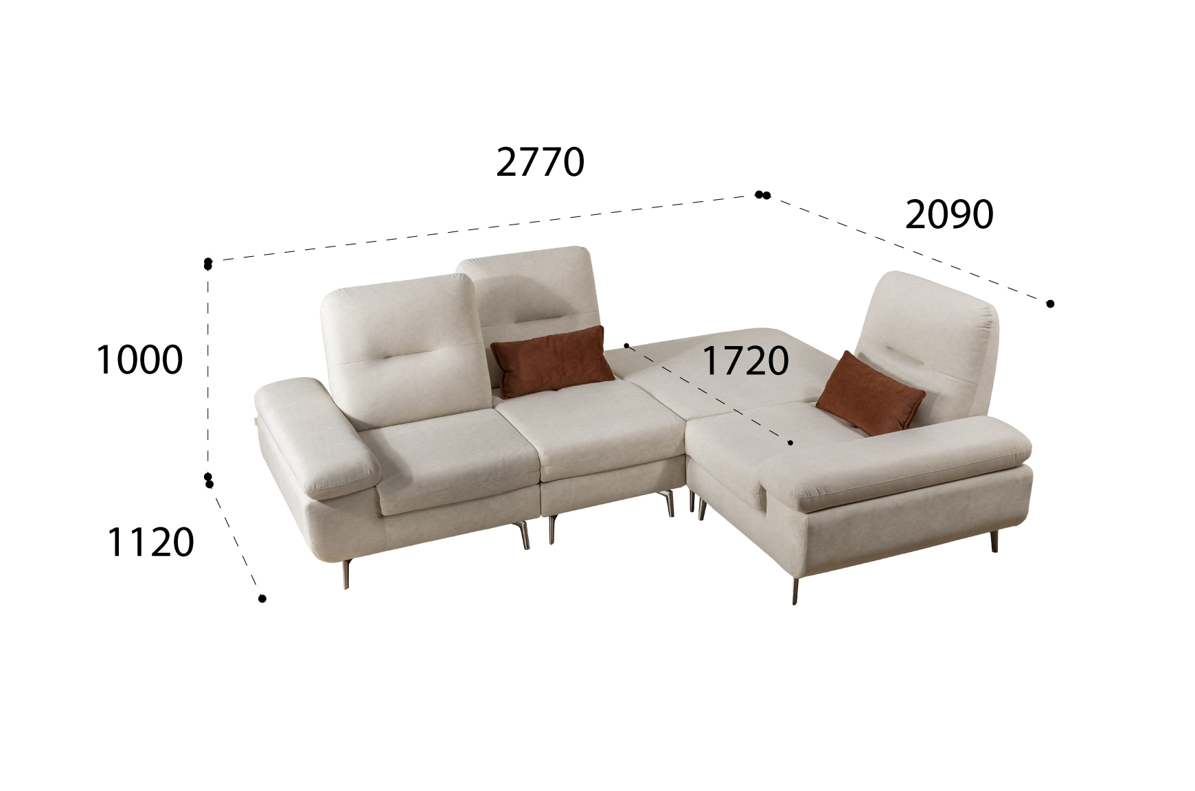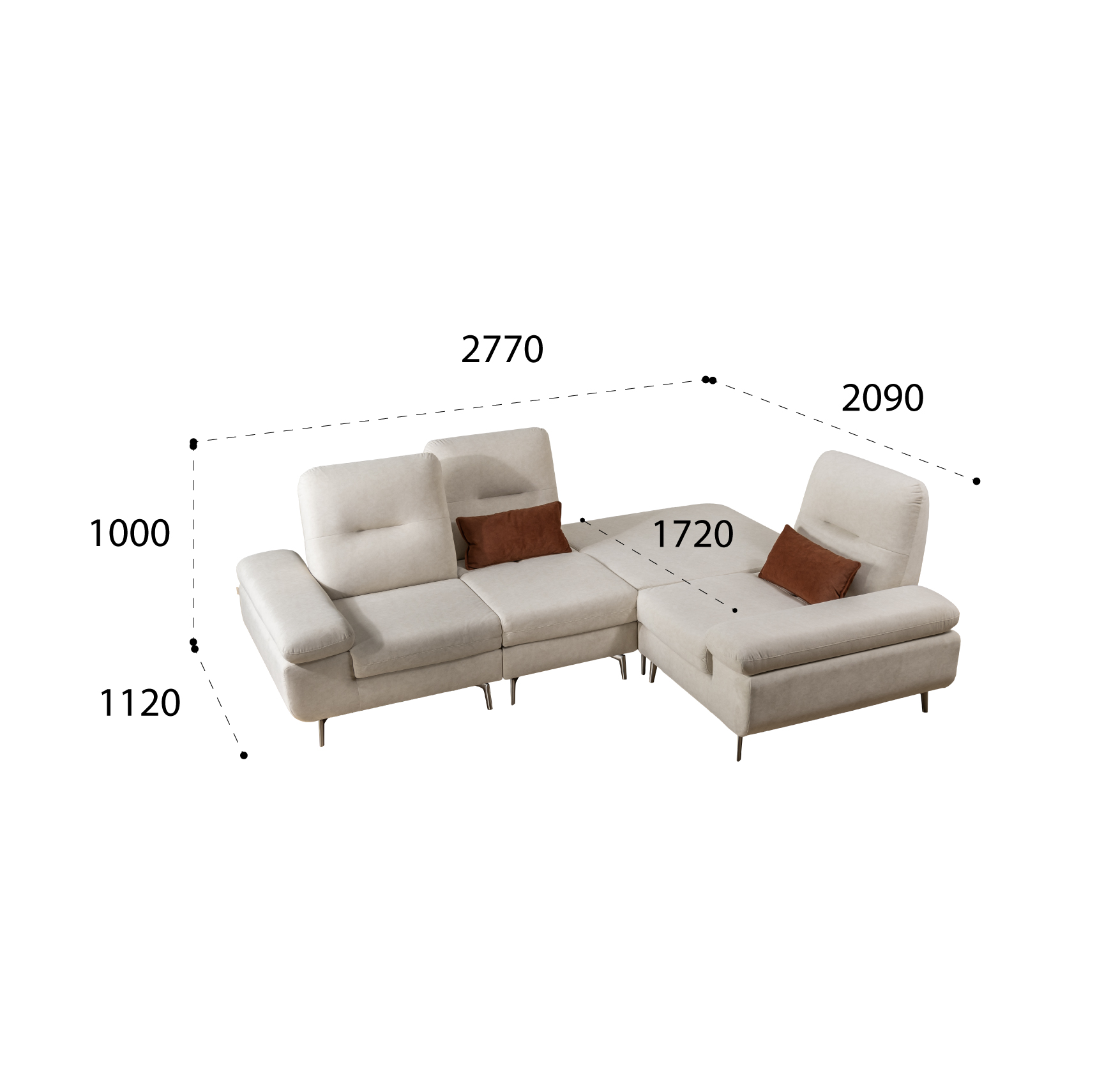 | Sofa 5 chỗ góc: 2770*1120(2090)*1000H | |