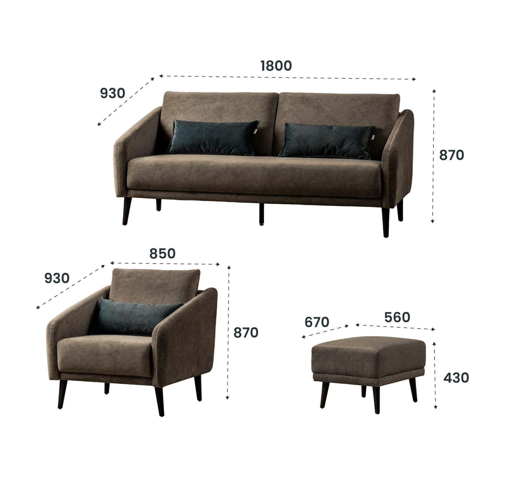 Sofa 1 chỗ: 850*930*870H |