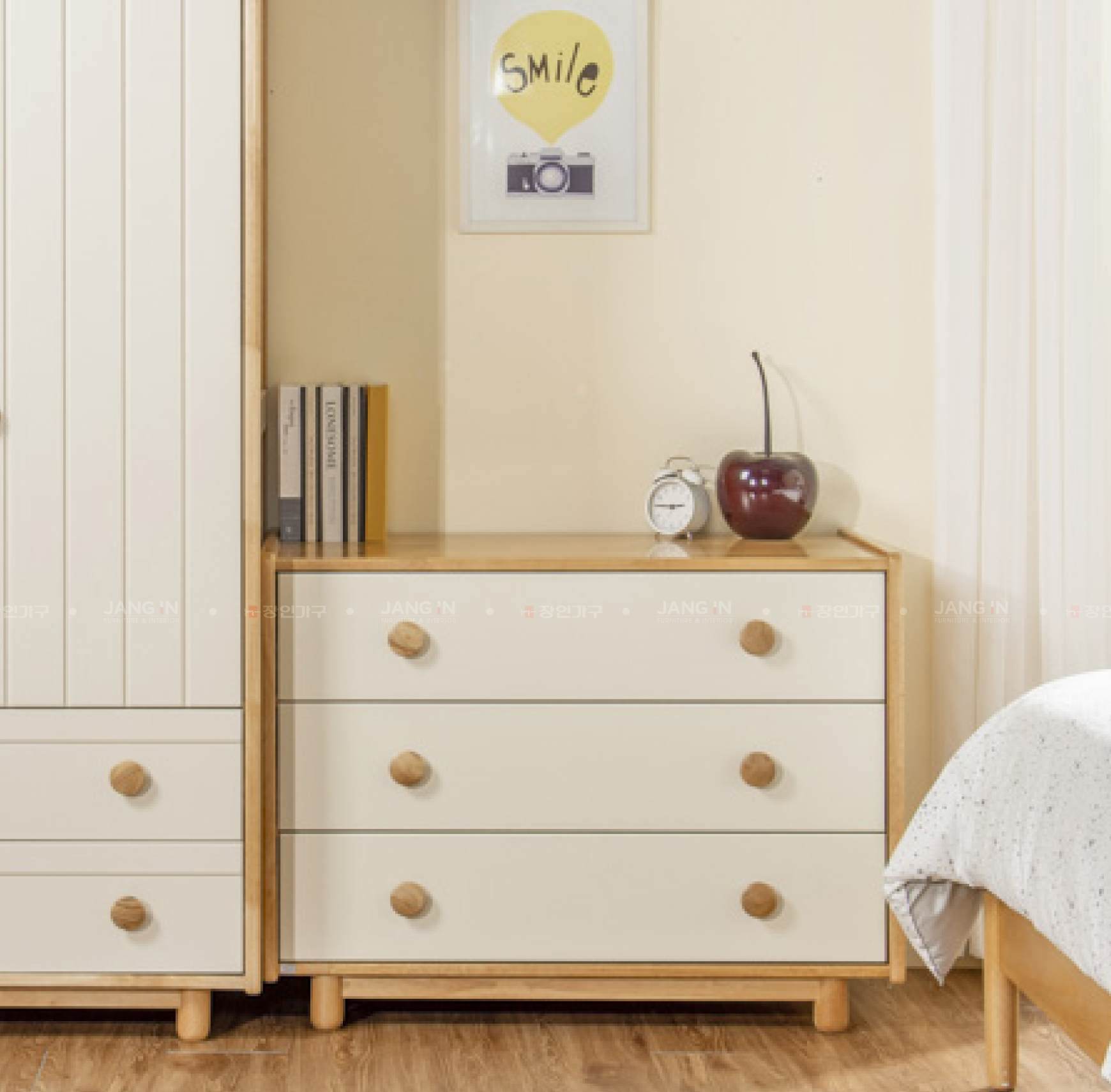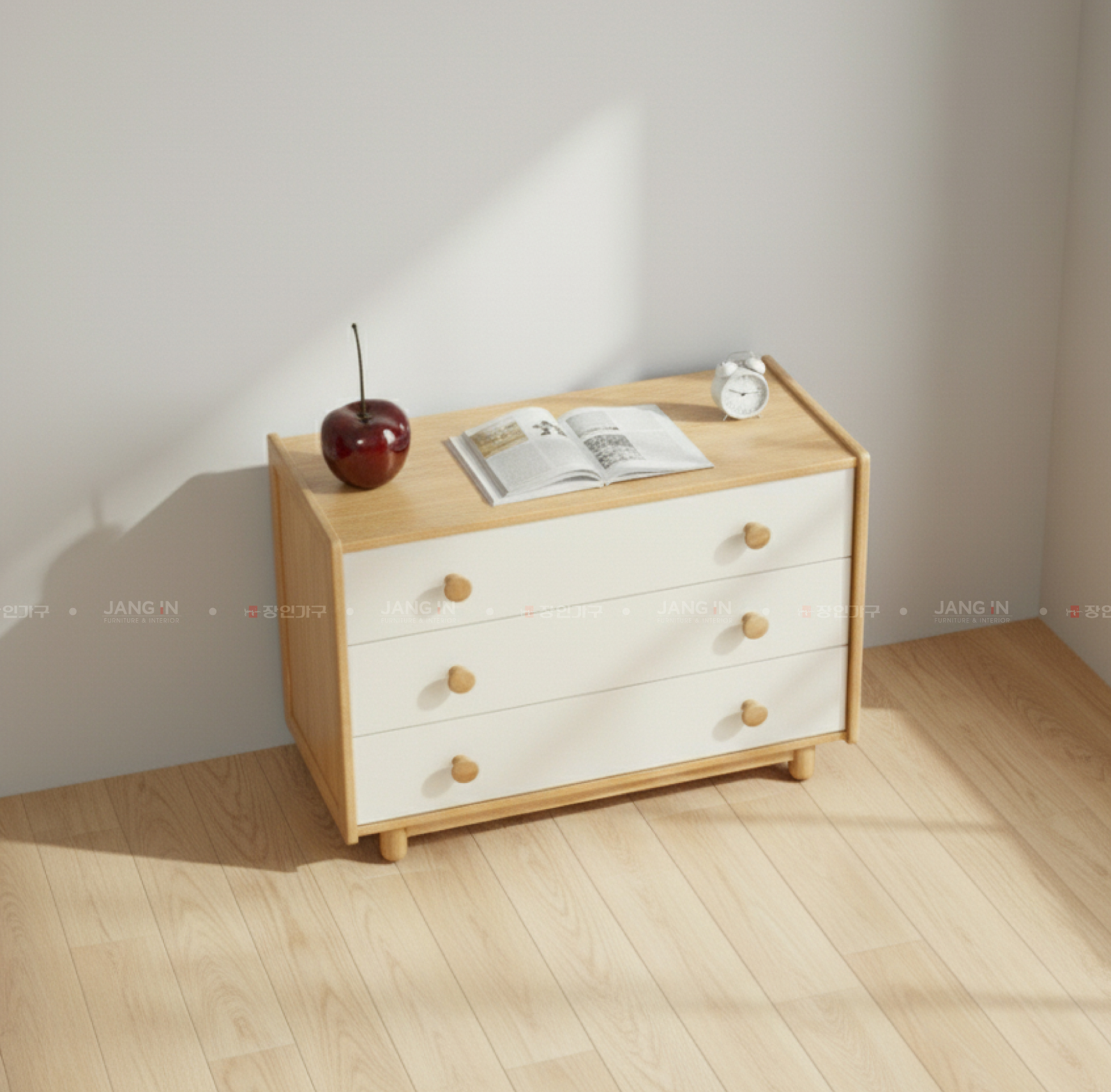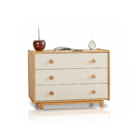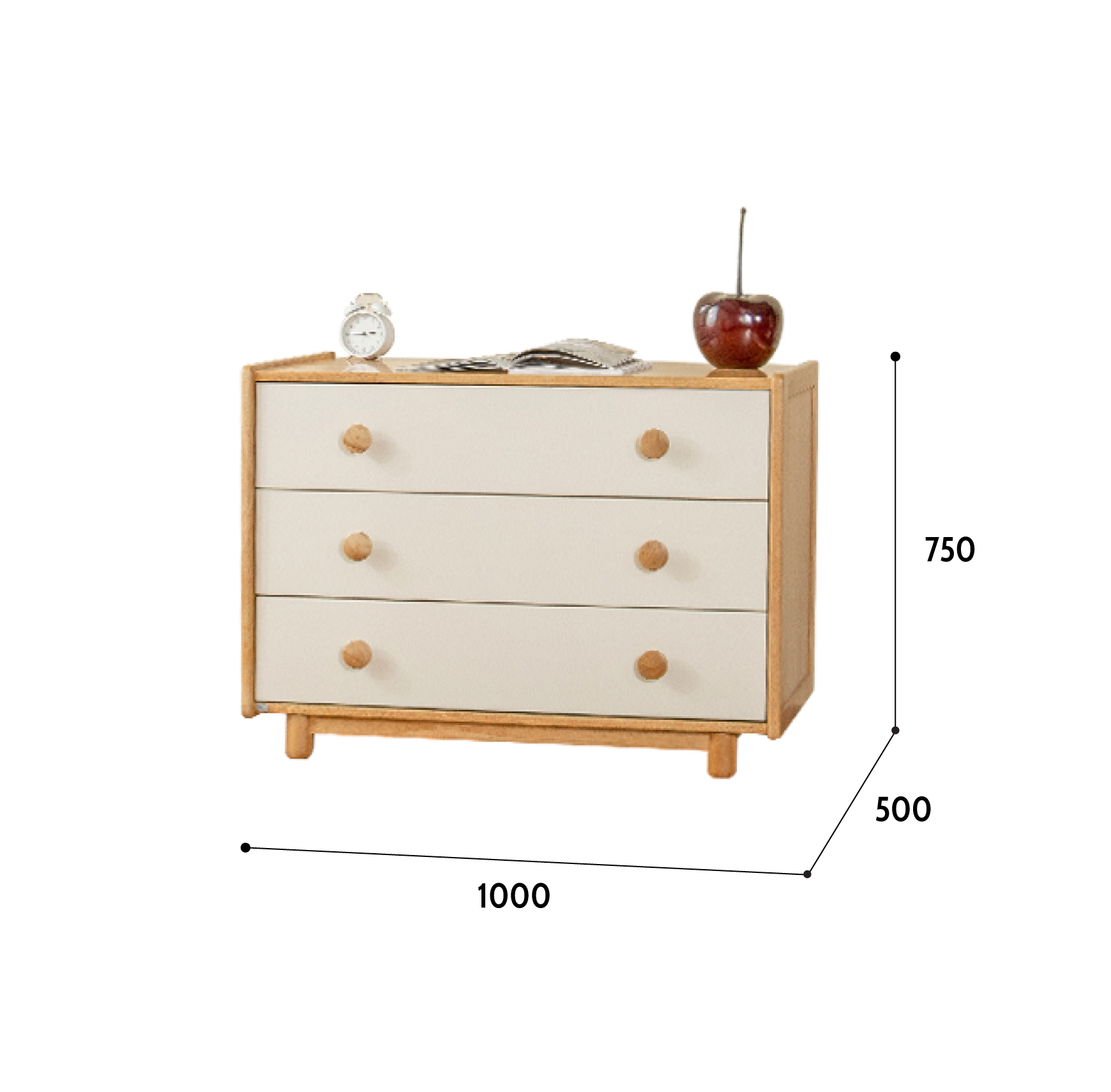 Tủ 3 hộc It’s Me có kích thước dài 1000mm, sâu 500mm, cao 750mm, được thiết kế với 3 ngăn kéo rộng rãi, giúp sắp xếp đồ dùng ngăn nắp và tối ưu không gian sống. Sự kết hợp hài hòa giữa màu gỗ tự nhiên và màu Ivory nhẹ nhàng mang đến cảm giác ấm áp, gần gũi cho không gian của bé.