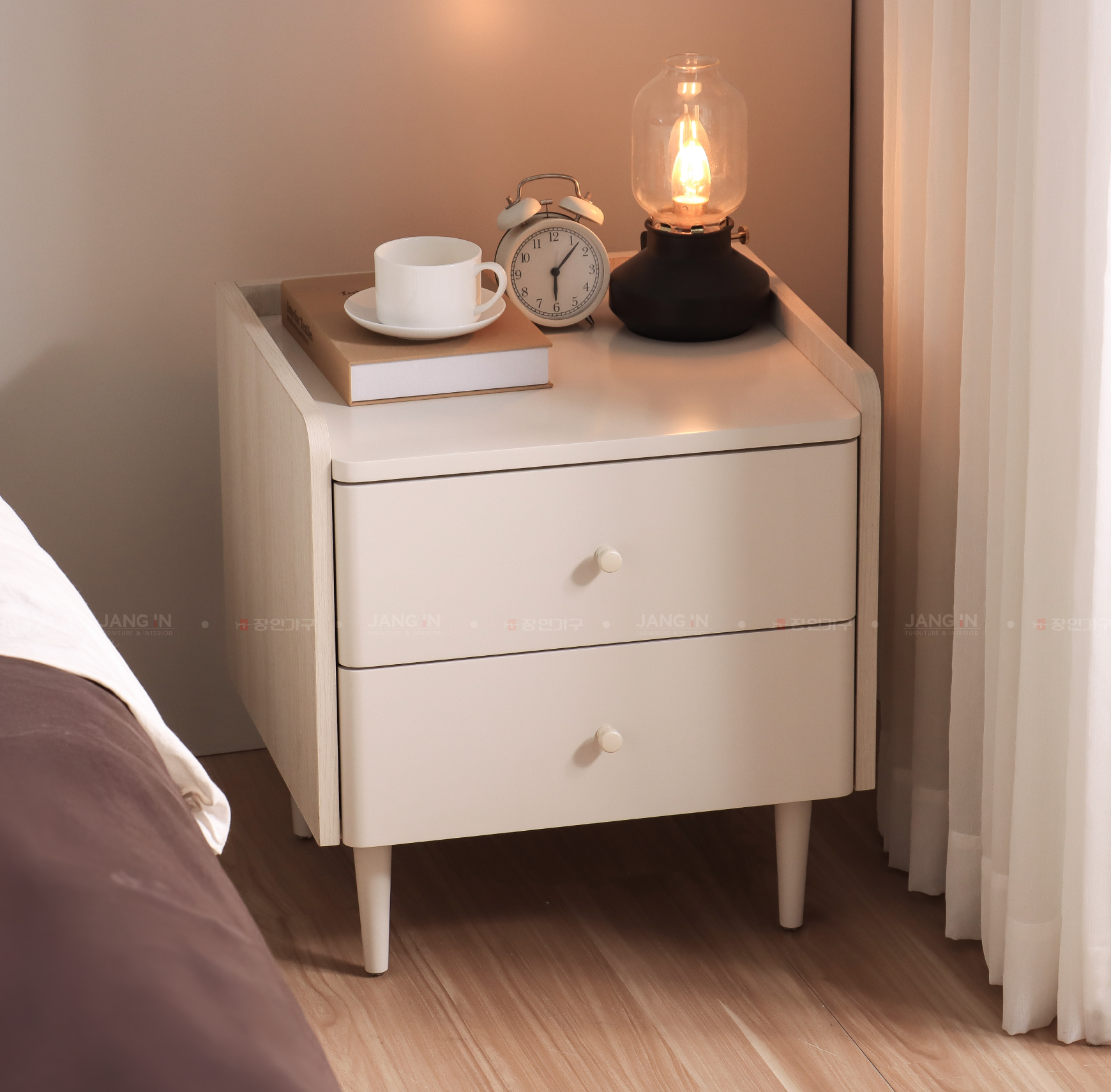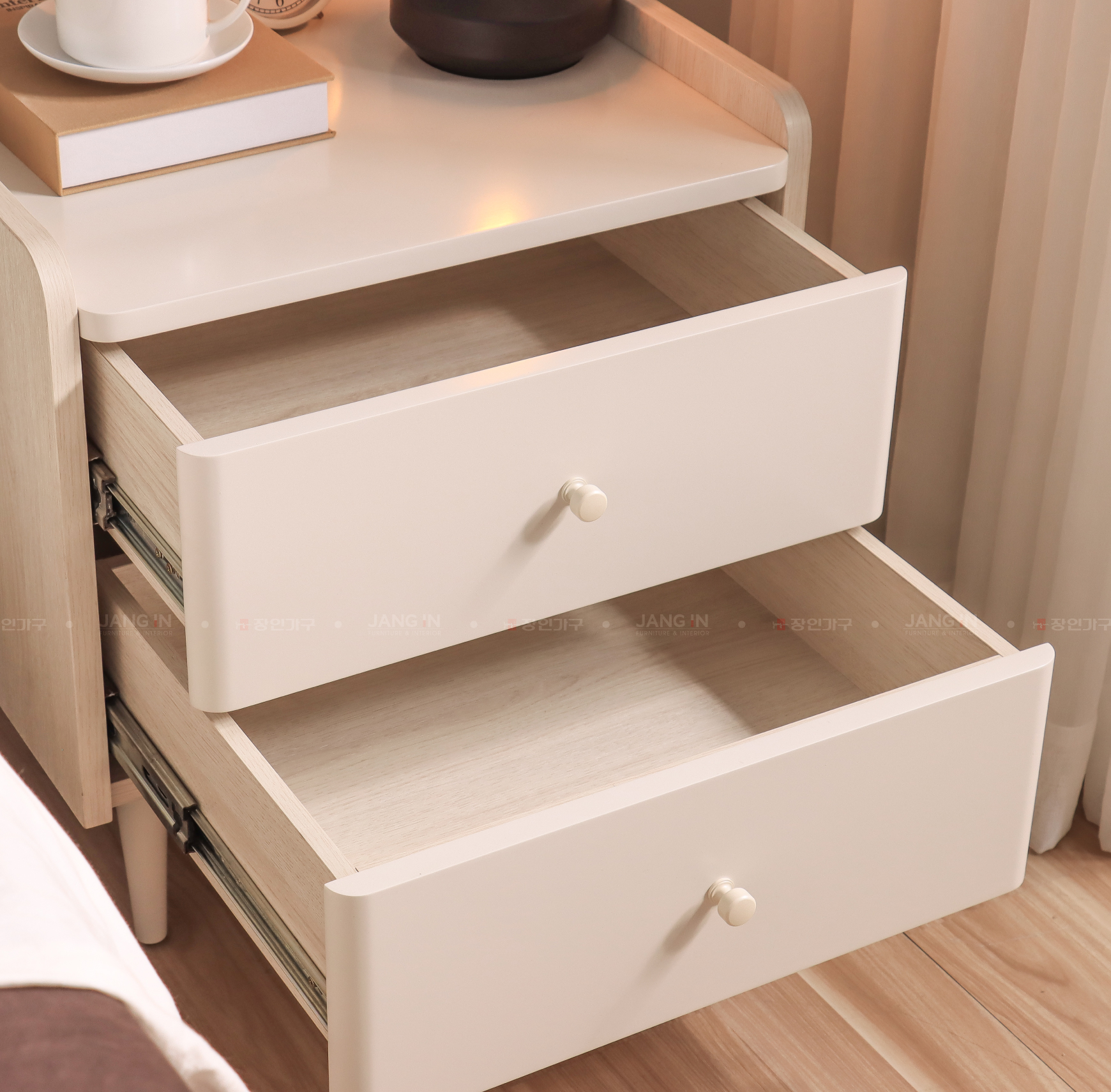 Tủ đầu giường Nexora được thiết kế đồng bộ với bộ nội thất phòng ngủ, mang gam màu trắng ngà kết hợp gỗ sáng, tạo nên không gian trẻ trung và thoáng đãng. Với kích thước nhỏ gọn, sản phẩm giúp tối ưu diện tích, dễ dàng kết hợp cùng giường và các nội thất khác trong phòng.