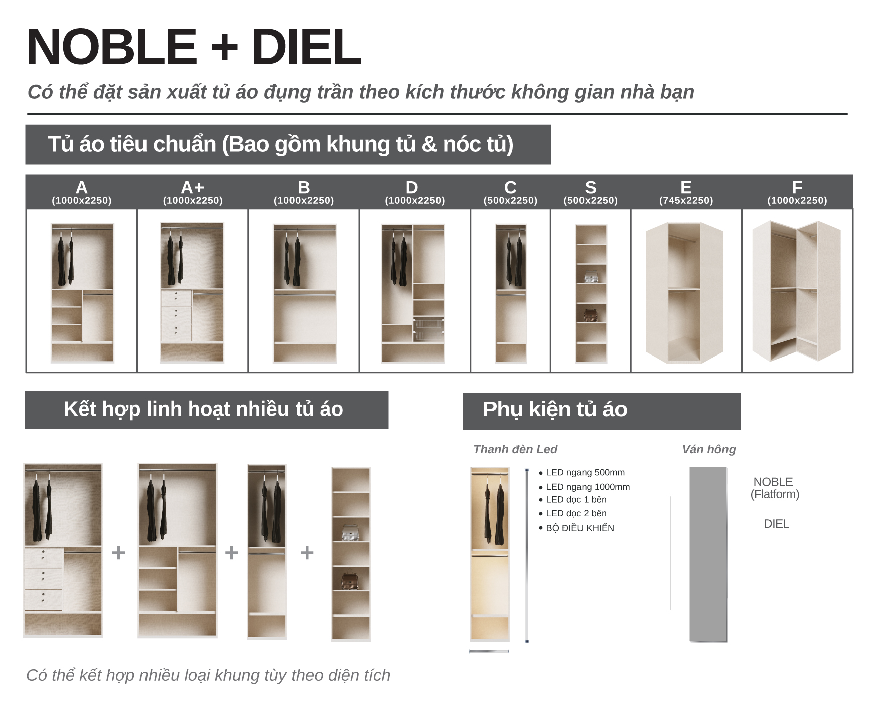 Bạn có thể chọn kết hợp tủ áo với tủ kính Noble để tạo không gian mang đậm cá tính riêng.